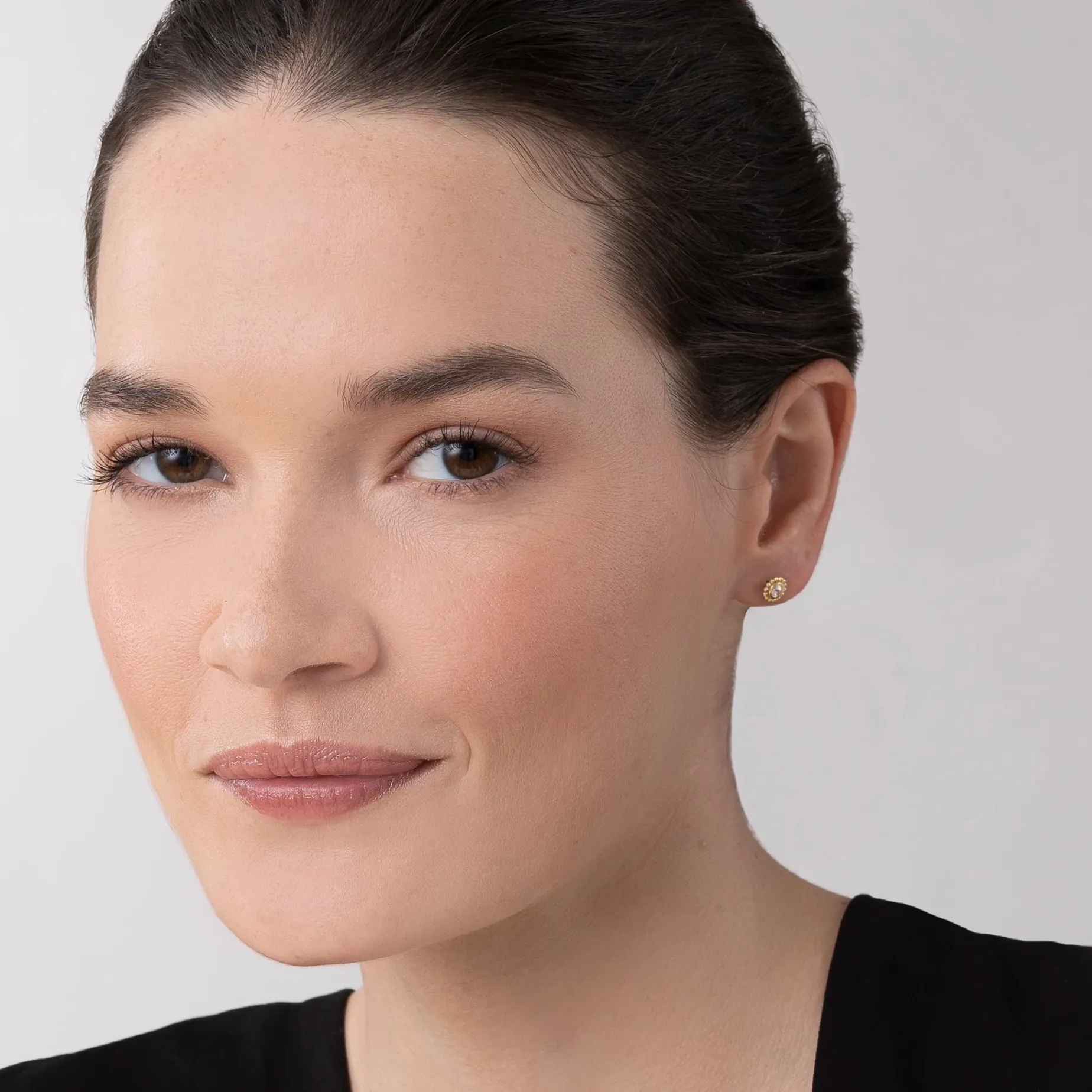 Rose Cut Diamond Stud Earrings Set And Surrounded By 18K Gold Caviar Beading. Lagos Diamonds Are The Highest Quality Natural Stones.