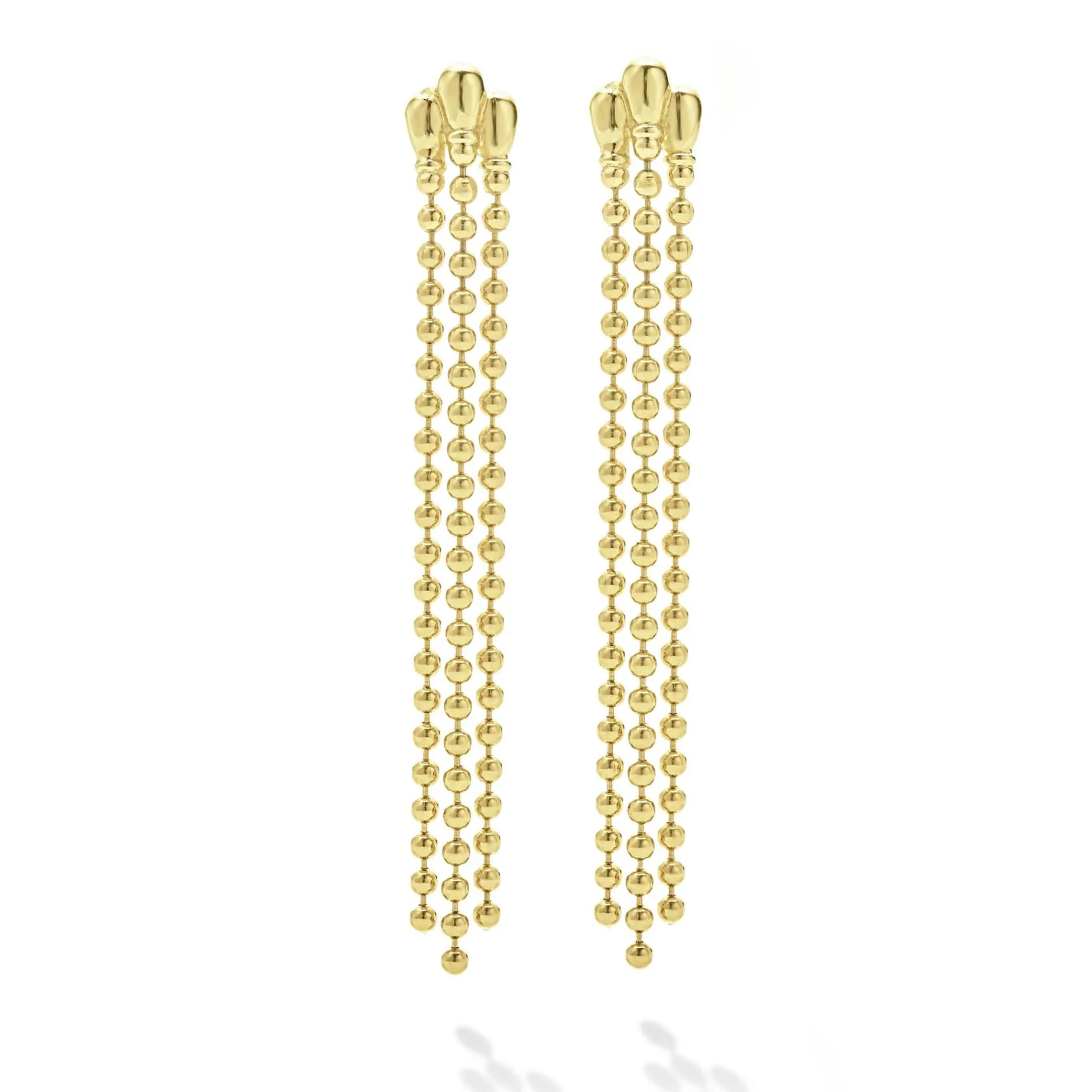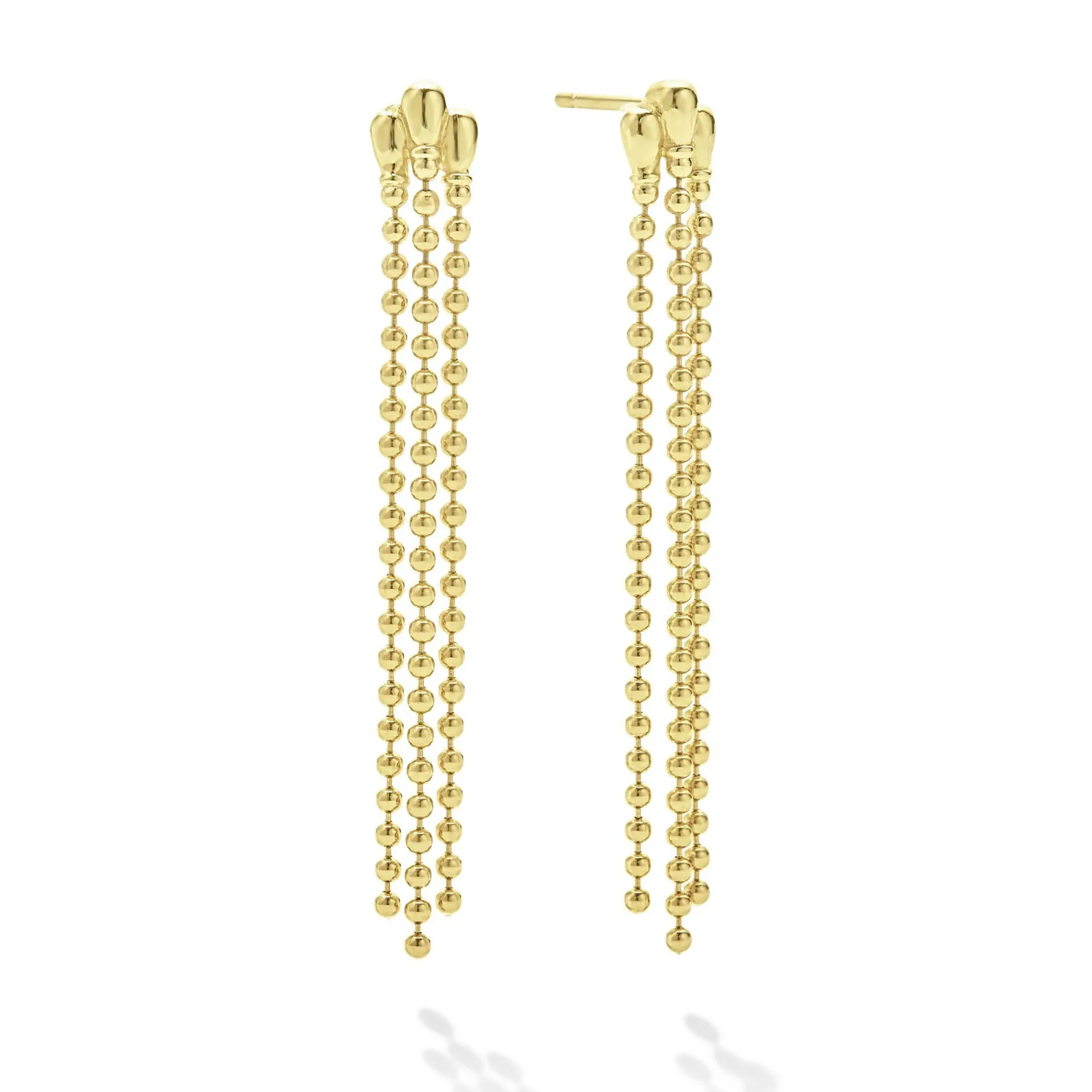 Limited Quantities For A Limited Time! A Lagos Exclusive. Three Strands Of 18K Gold Caviar Beading Form These Drop Earrings.
