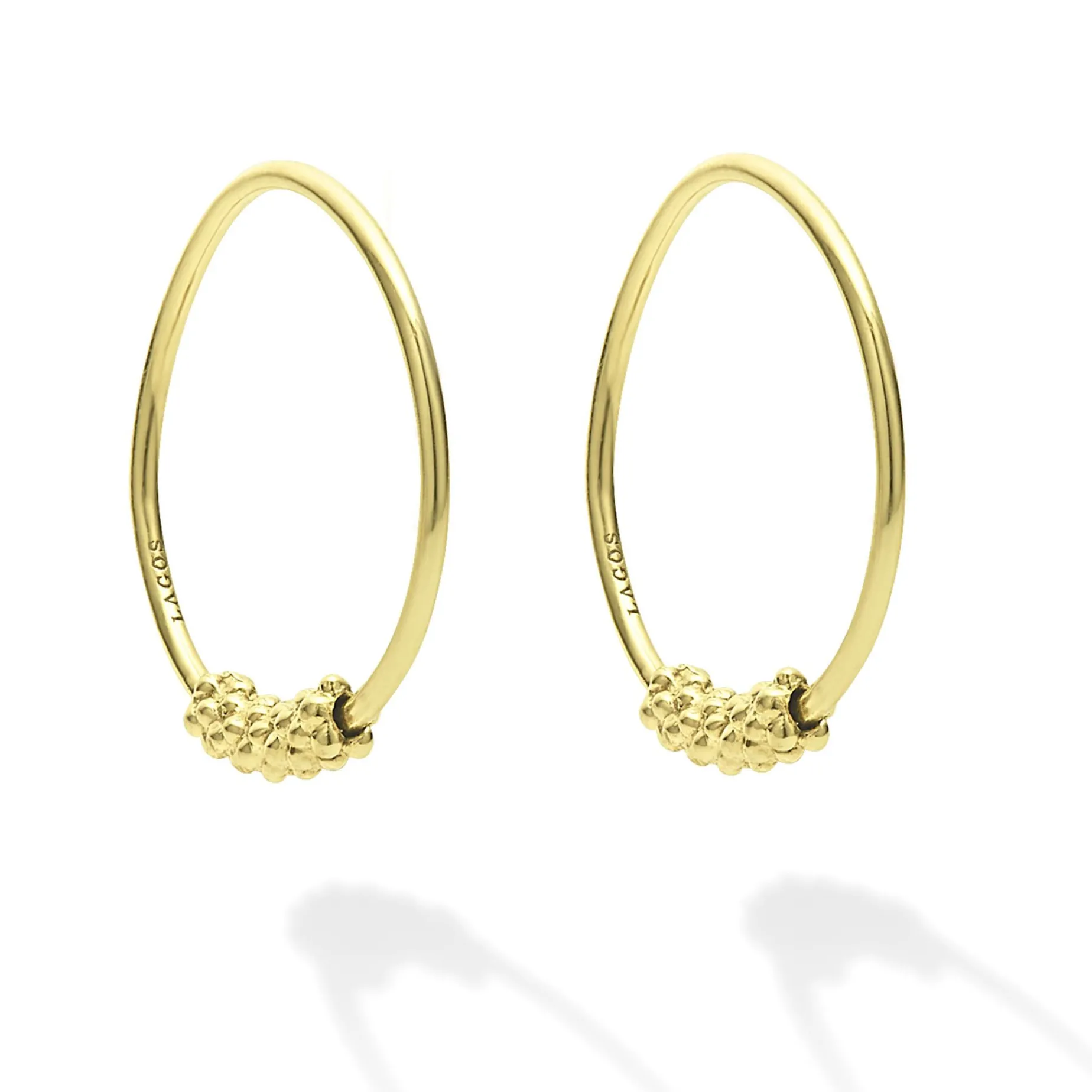 Smooth 18K Gold Accented With Superfine Caviar Beading Form These Timeless Hoop Earrings.