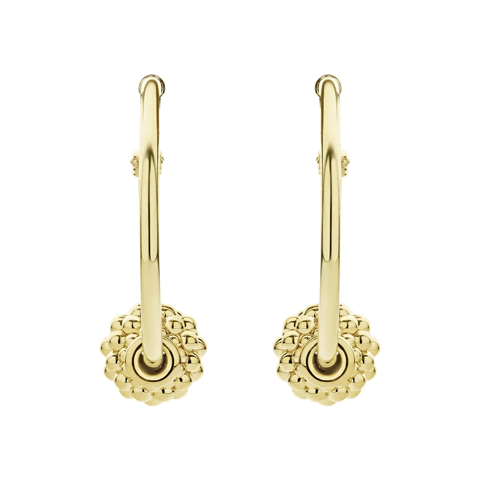 Small 18K Gold Hoop Earrings Accented With A Caviar Beaded Ball For A Unique Look.