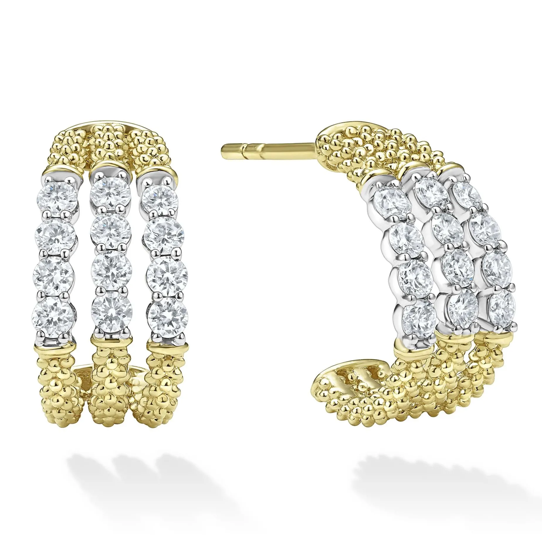 18K Gold And Diamonds Form These Superfine Caviar Beaded Hoop Earrings. Lagos Diamonds Are The Highest Quality Natural Stones.
