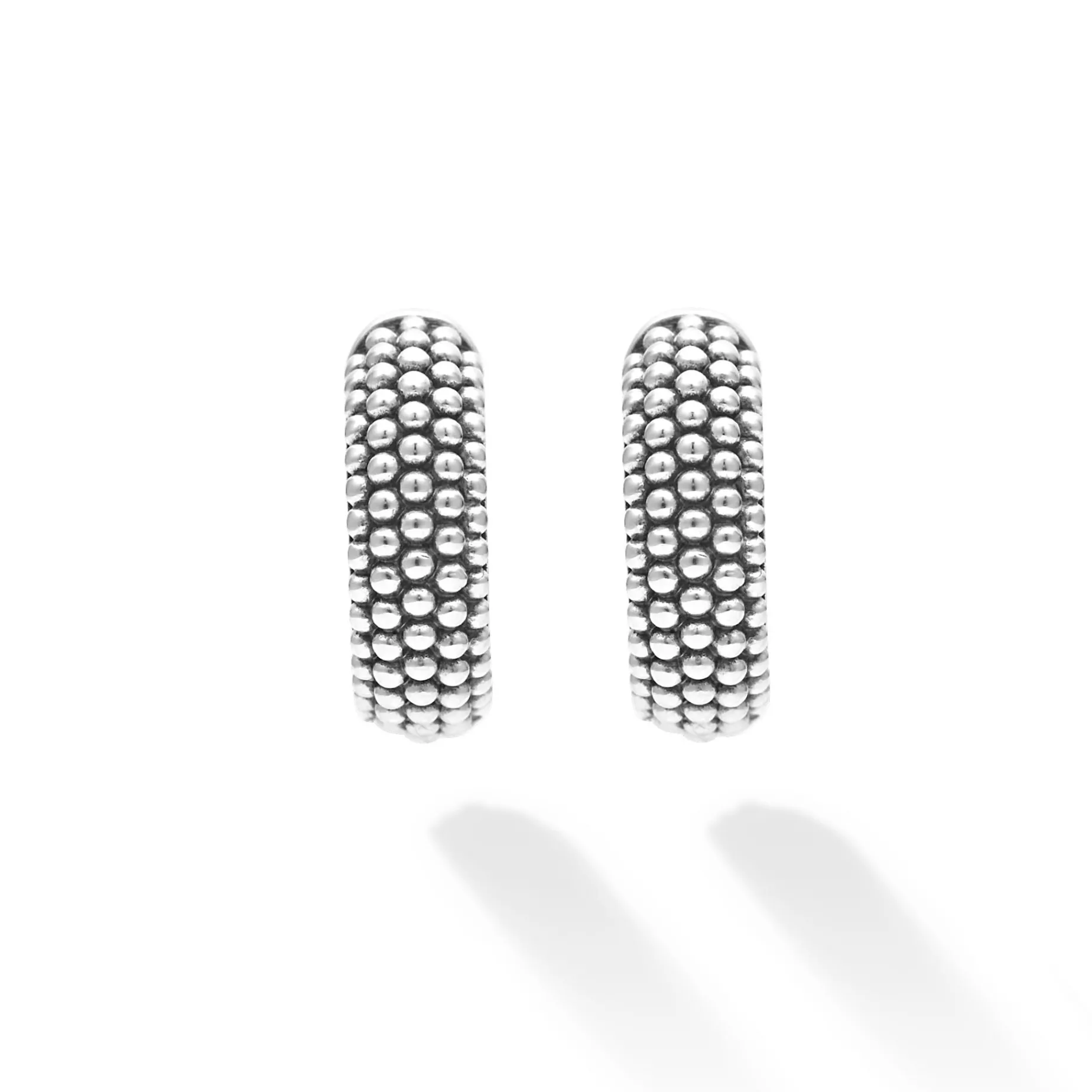 Sterling Silver Caviar Beading Creates These Huggie Hoop Earrings.