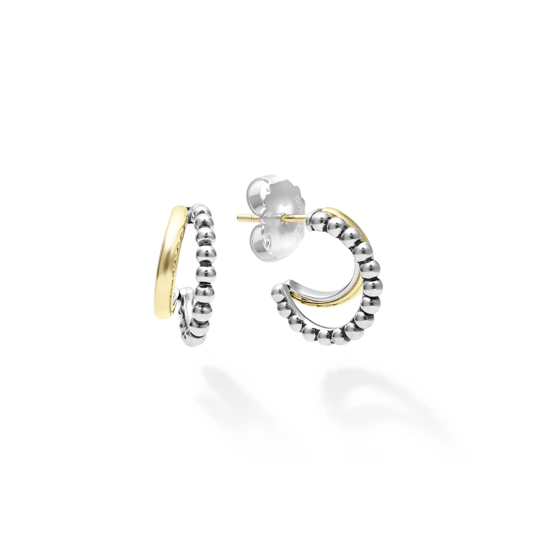 Smooth 18K Gold And Caviar Beaded Sterling Silver Forms These Beautiful Double Mini Hoop Earrings.
