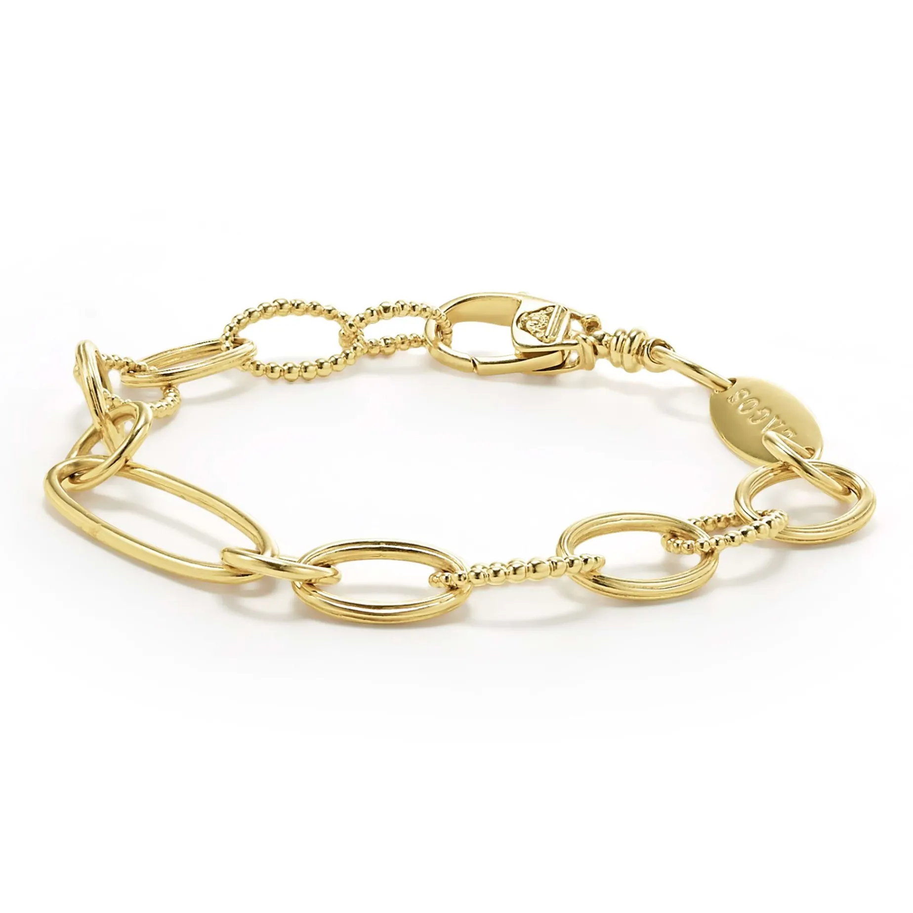 18K Gold Variations Of Smooth Elements Form This Timeless Link Bracelet.