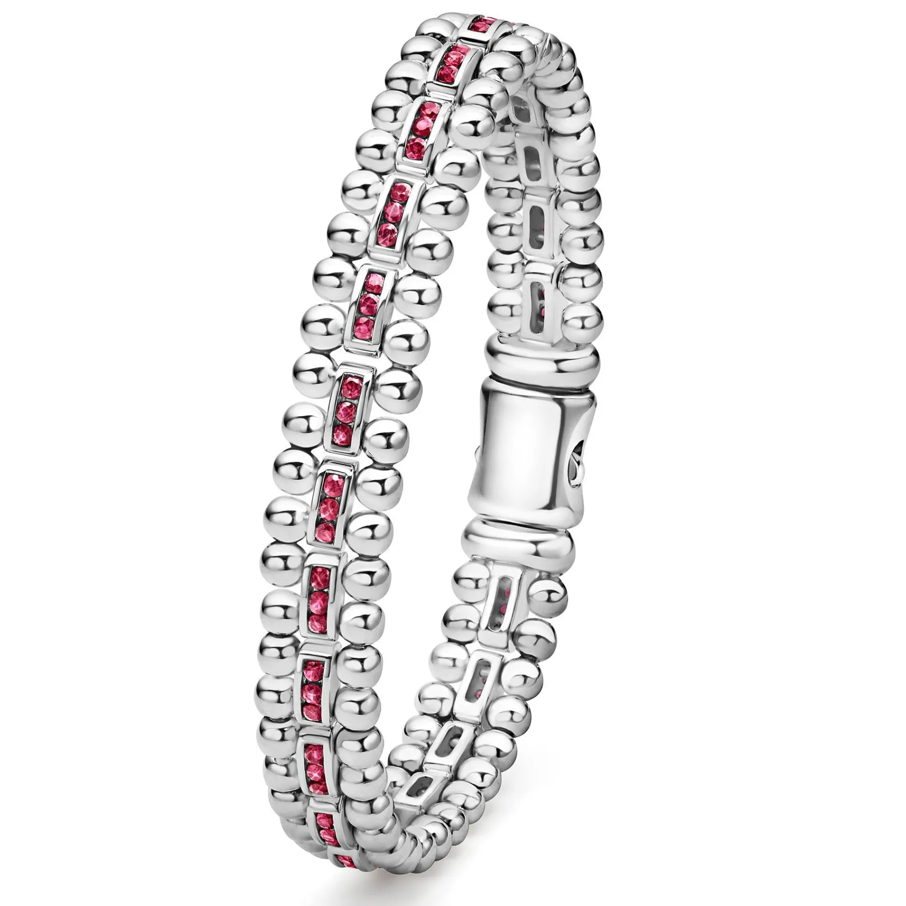 A Lagos Exclusive. Sterling Silver Caviar Link Bracelet With Precious Ruby Gemstone Detailing.