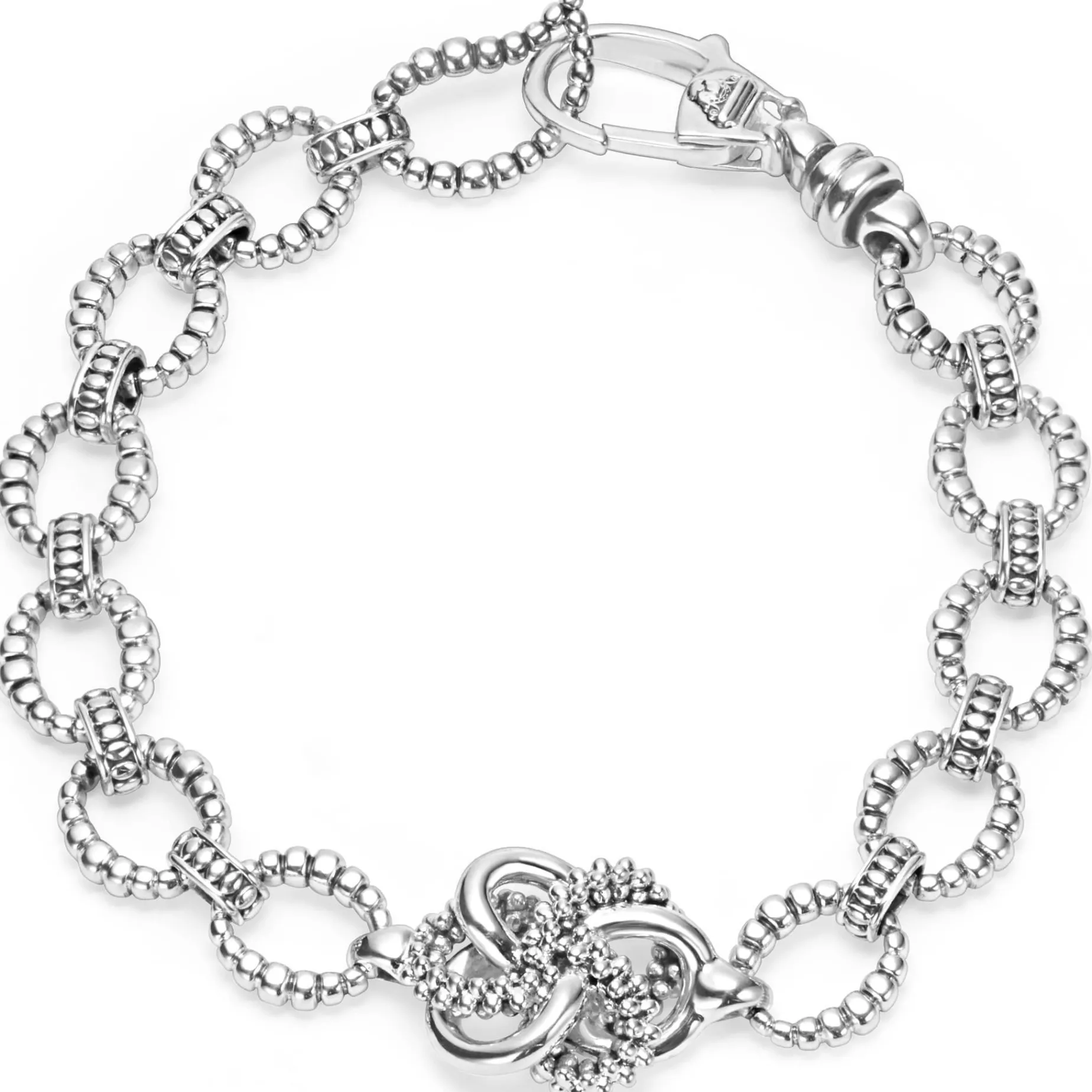 Love Knot Collection Sterling Silver Link Bracelet Detailing A Highly Polished And Caviar Beaded Love Knot.
