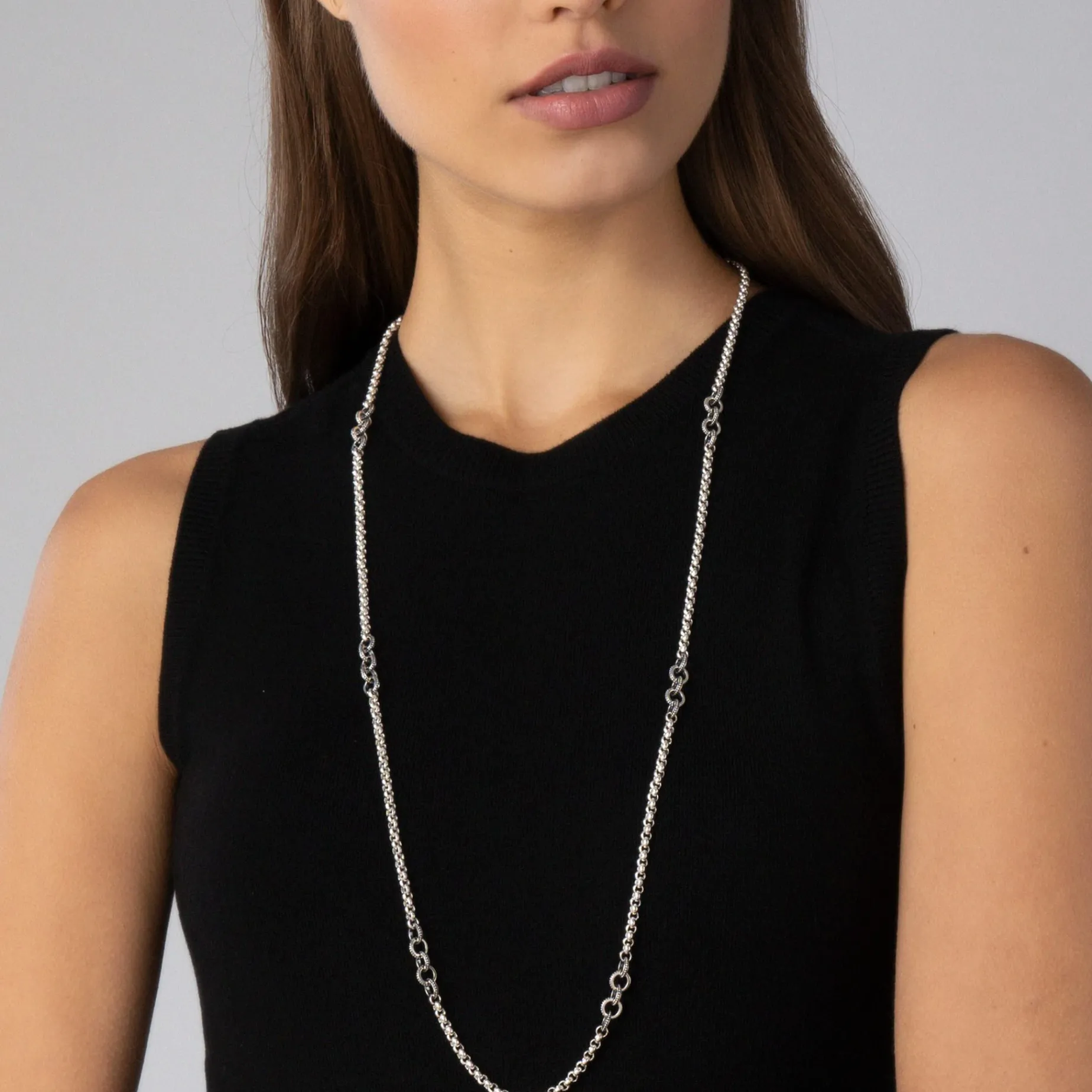 Five Stations On Sterling Silver Links With Caviar Beaded Accents Form This Versatile Necklace.
