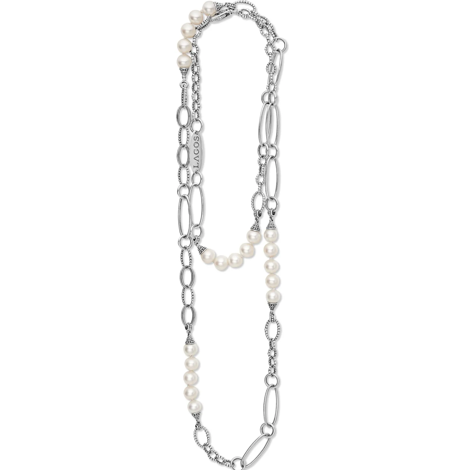 Five Cultured Freshwater Pearl Stations On A Signature Sterling Silver Caviar Beaded Link Necklace.