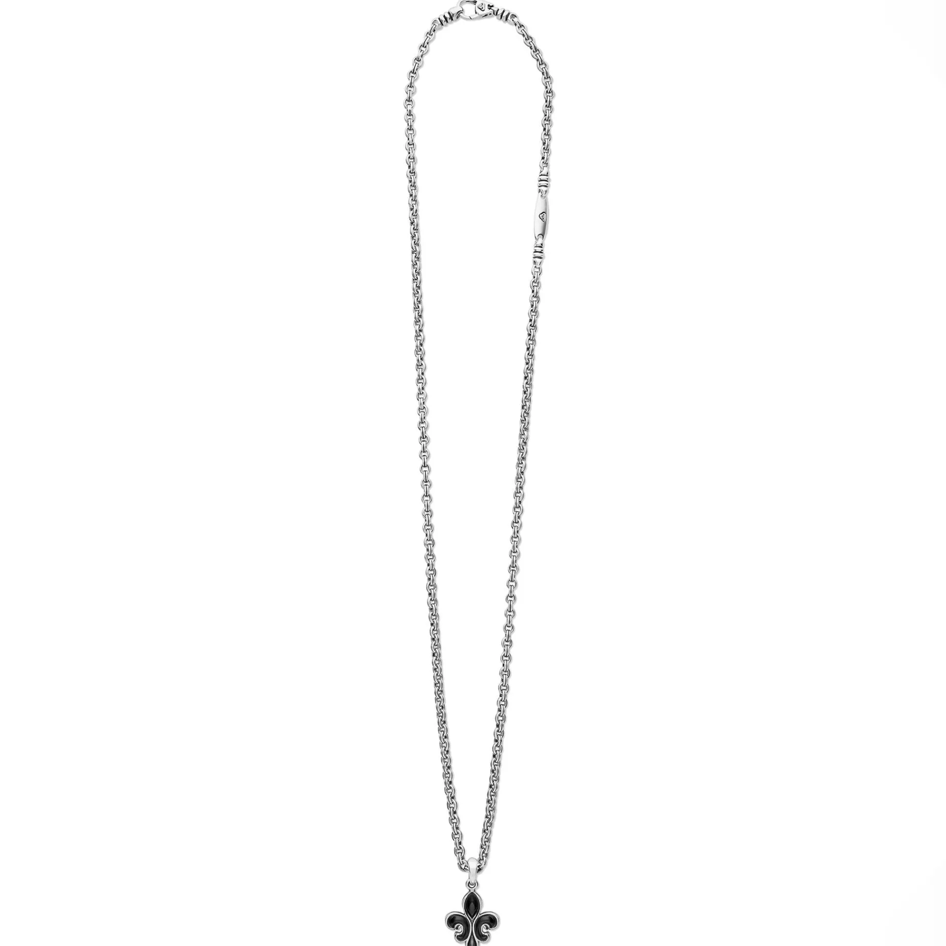 Black Agate Gemstone And Sterling Silver Form This Fleur De Lis Amulet. Finished On A 3Mm Double Link Chain Necklace.
