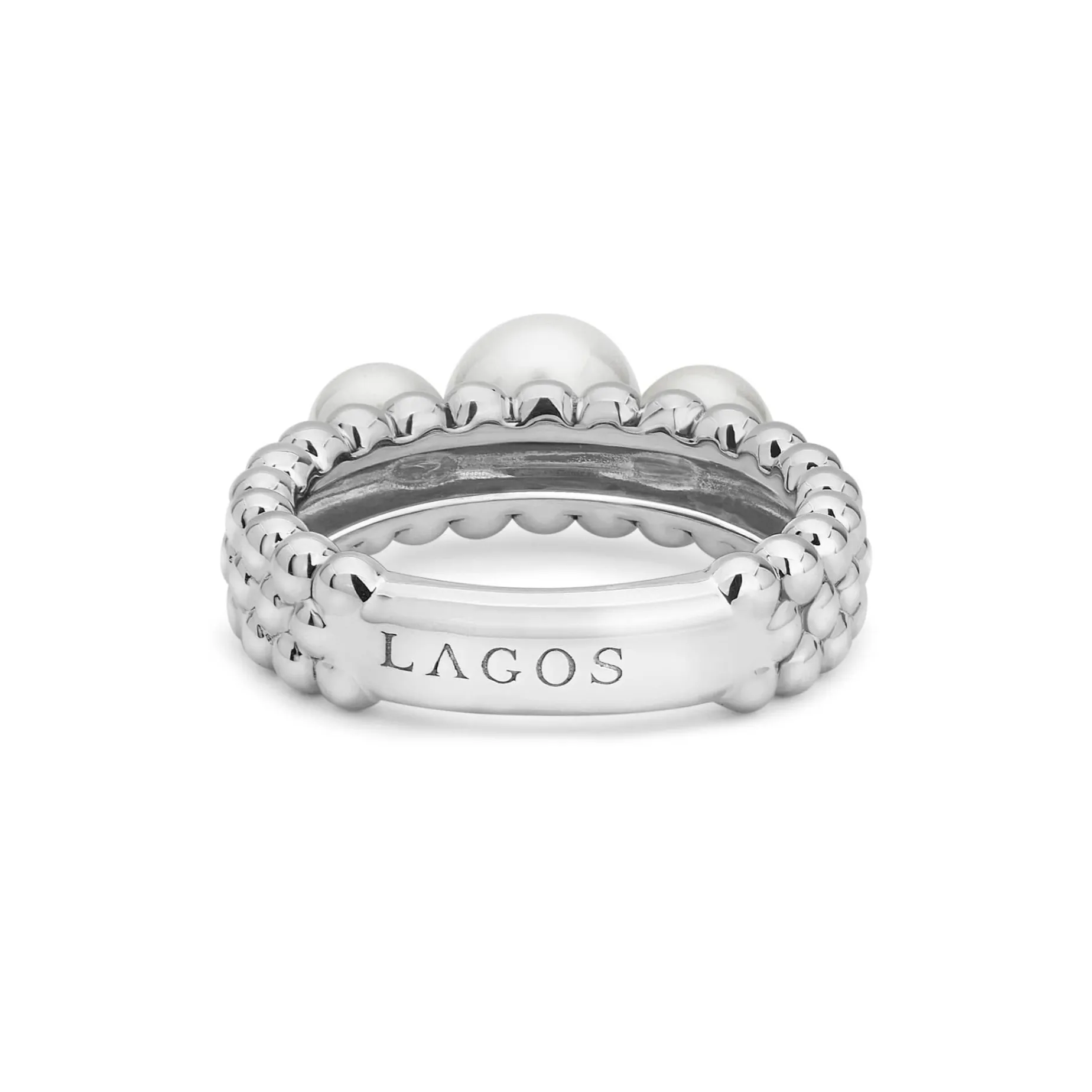 Three Cultured Freshwater Pearls Form This Statement Ring With Sterling Silver Caviar Beading.