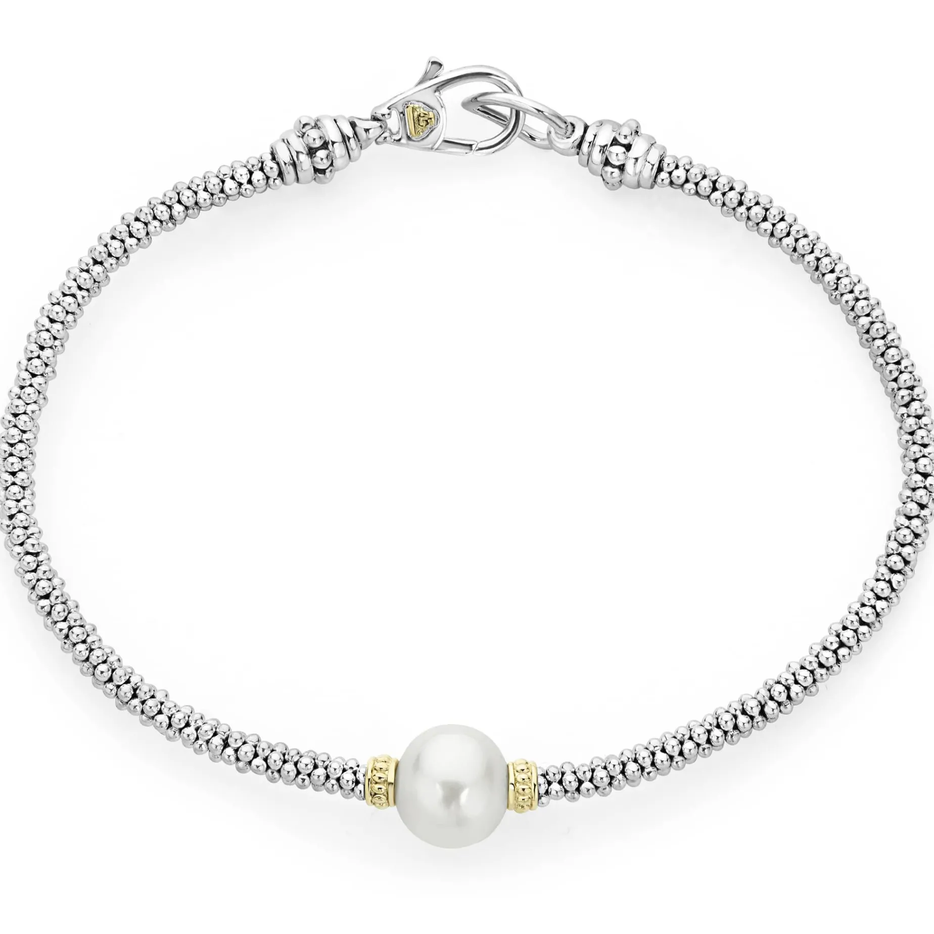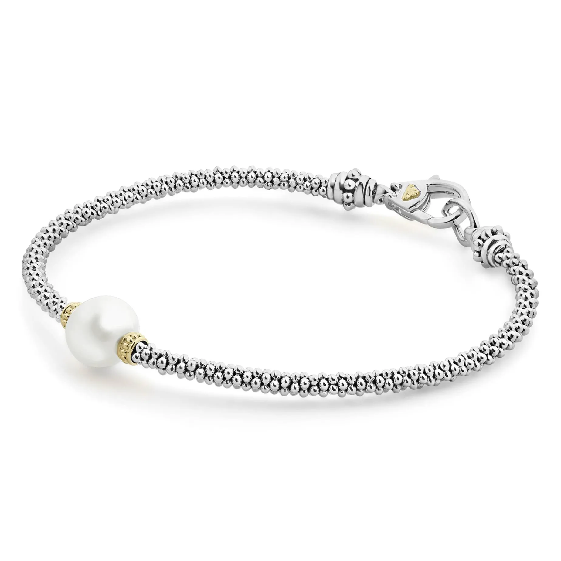 A Cultured Freshwater Pearl Station With Caviar Beading In 18K Gold And Sterling Silver Form This Versatile Bracelet.