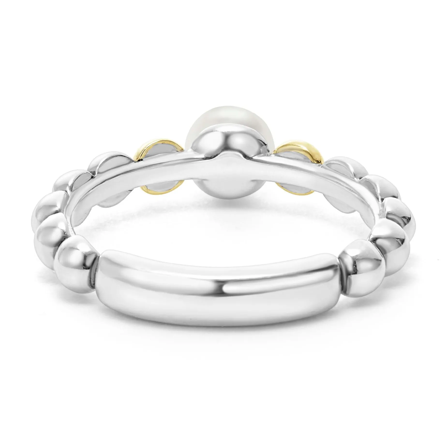 Cultured Freshwater Pearl Ring With Caviar Beading In 18K Gold And Sterling Silver.