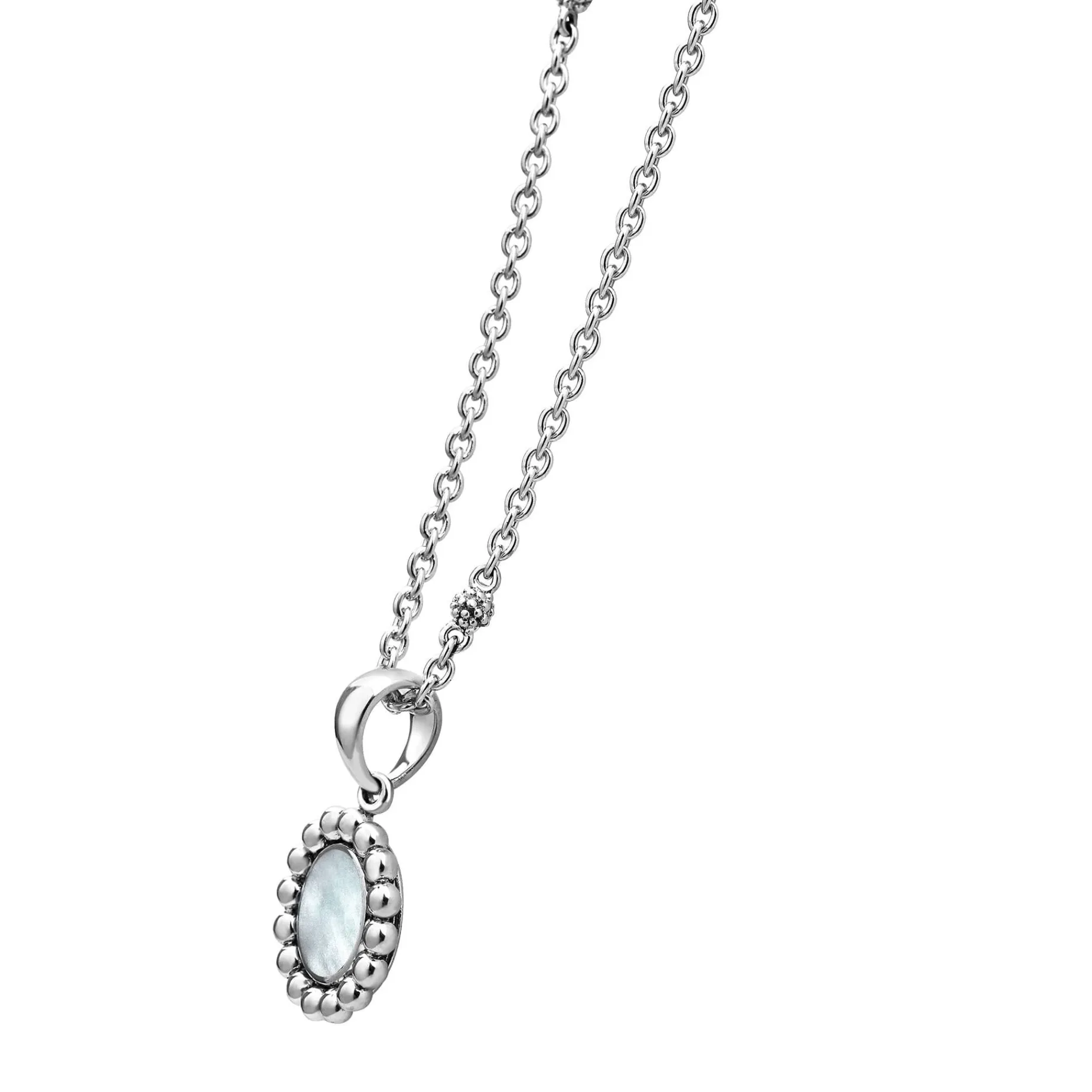 Mother Of Pearl Gemstone Pendant Framed By Sterling Silver Caviar Beading Finished On A Versatile Link Necklace With Six Sterling Silver Caviar Beaded Stations.