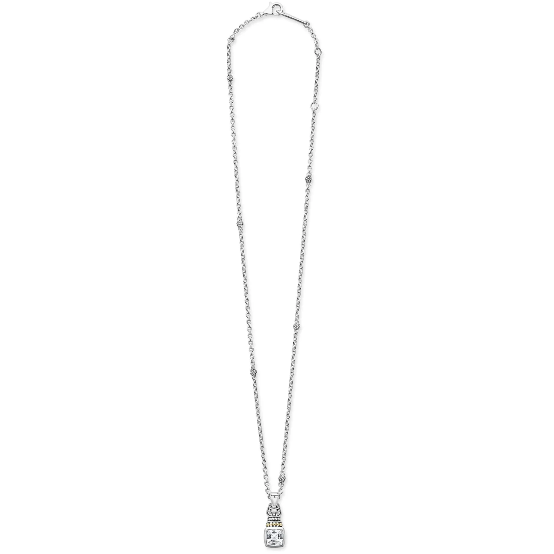 White Topaz Gemstone Drop Pendant Necklace With 18K Gold And Sterling Caviar Beading. Necklace Adjusts From 16 To 18 Inches For Added Versatility.