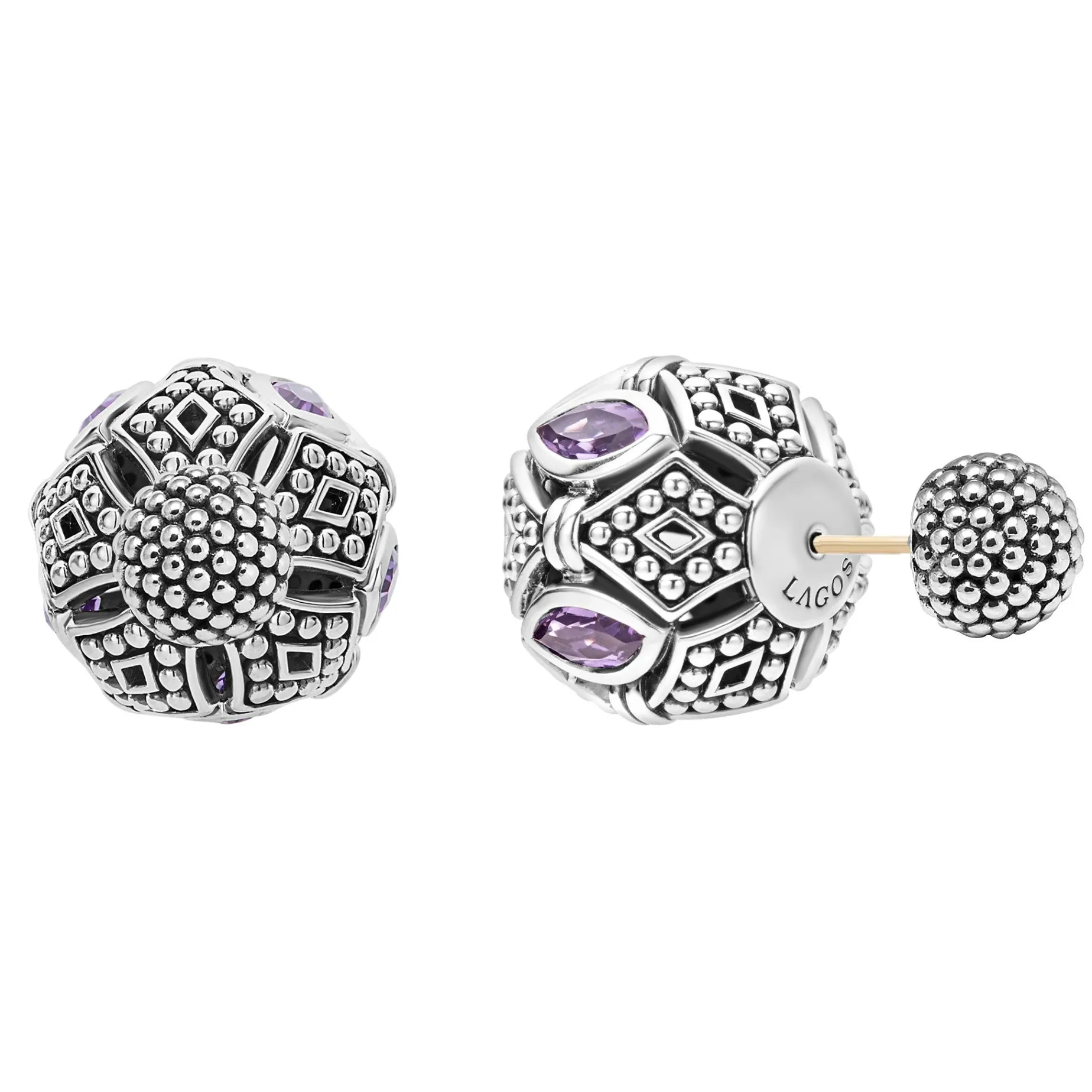 A Lagos.Com Exclusive. Amthyst Gemstones With Sterling Silver Beading Form These Versatile Earring Backs. Wear This Back With Any Lagos Stud Earring Front.