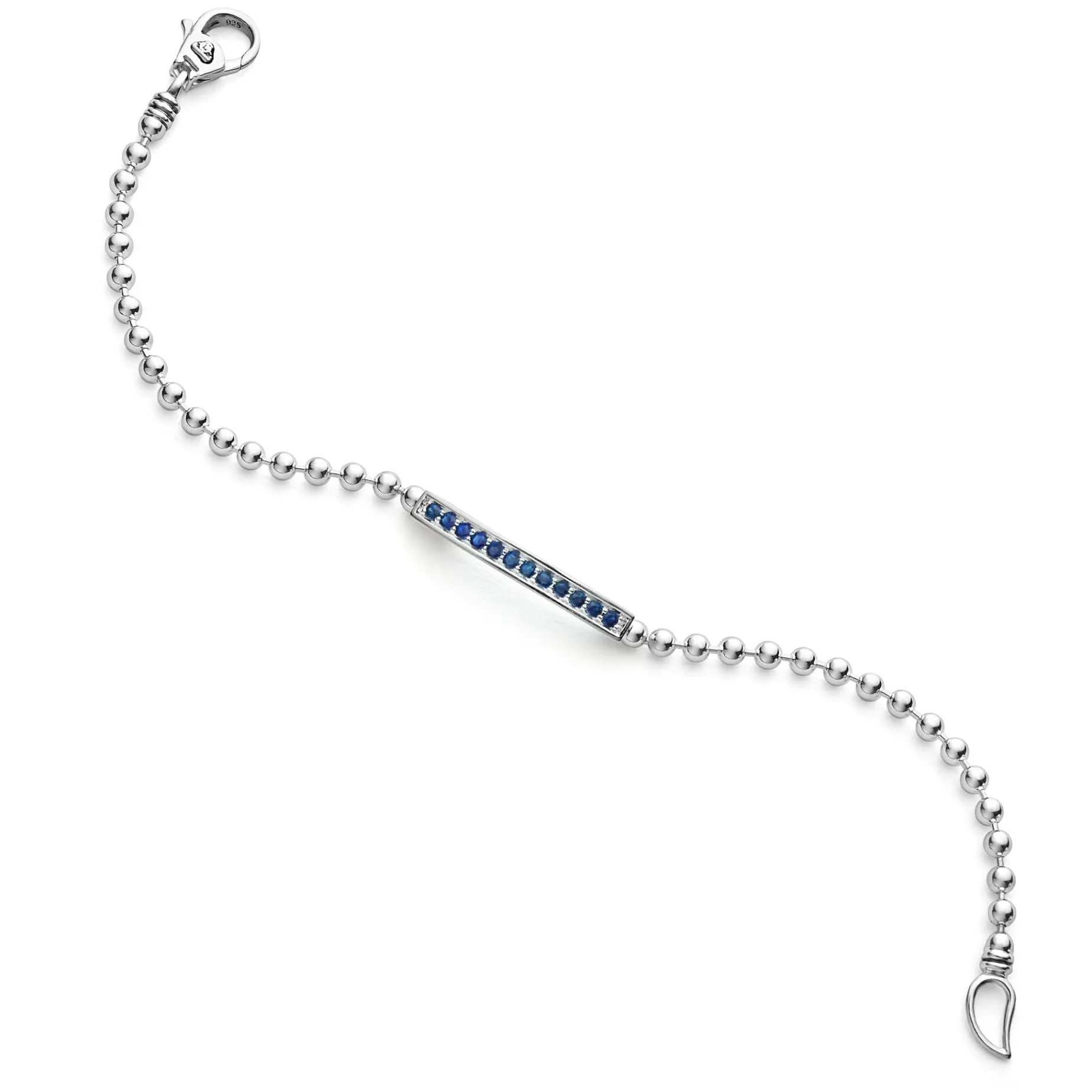 A Linear Blue Sapphire Gemstone Station Set By Sterling Silver Caviar Beading Forms This Bracelet.