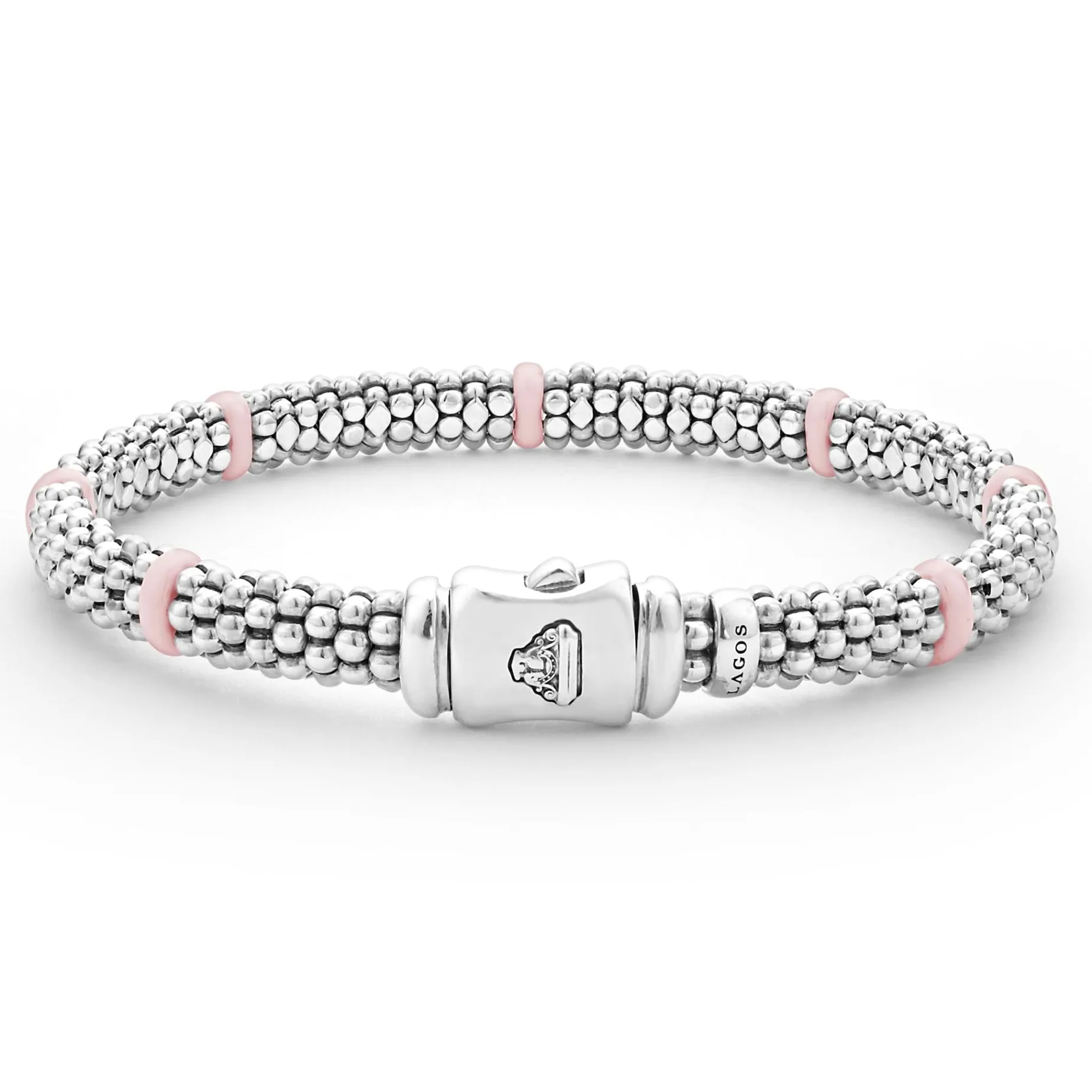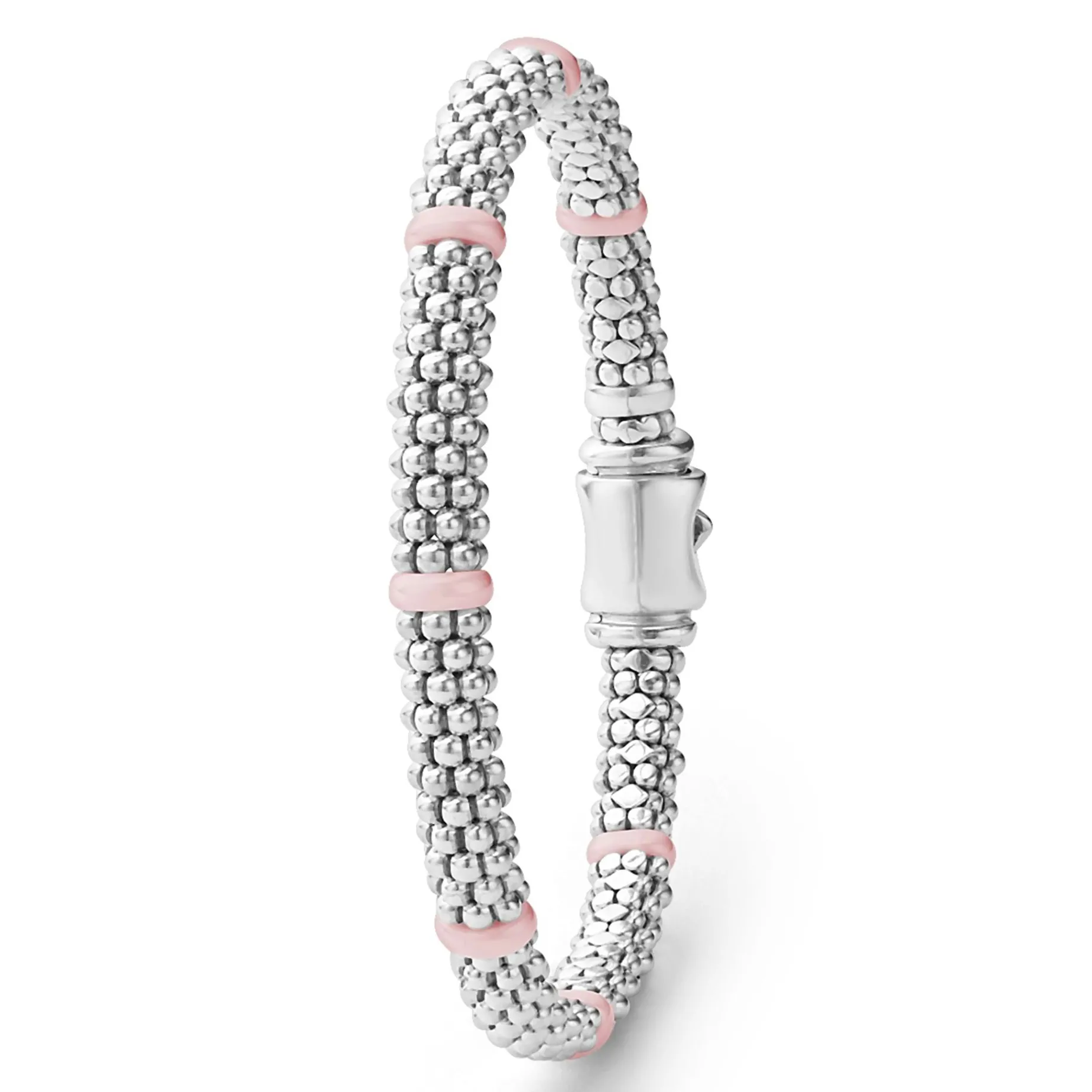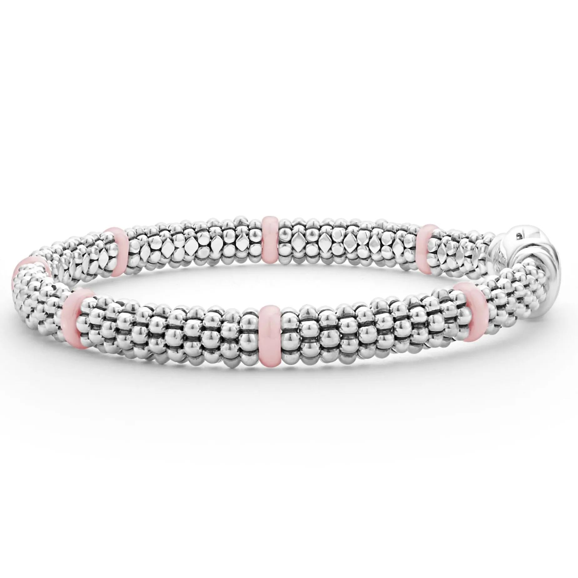 Seven Smooth Pink Ceramic Stations Highlight Sterling Silver Caviar Beading On This Signature Bracelet.