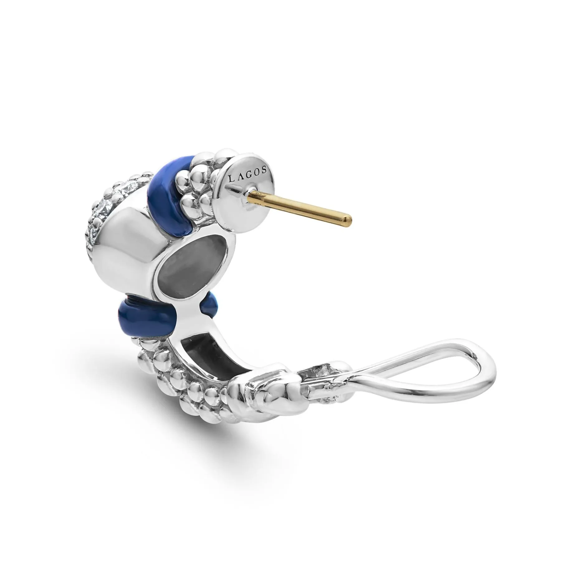 Diamonds Set In Ultramarine Ceramic Form These Oval Hoop Earrings With Classic Caviar Beading. Lagos Diamonds Are The Highest Quality Natural Stones.