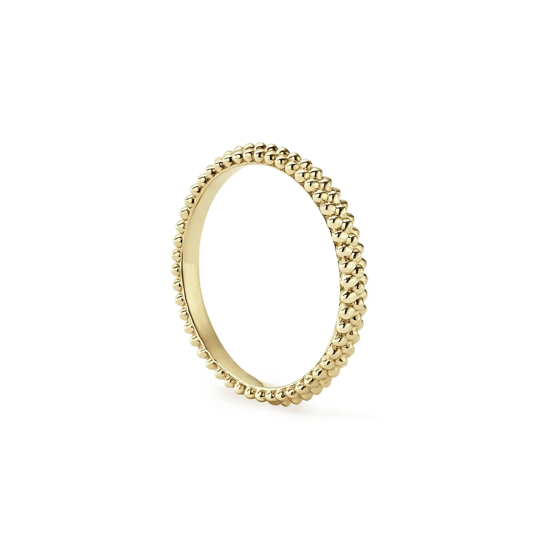 An 18K Gold Caviar Beaded Stacking Ring. Perfect To Layer With Other Rings.
