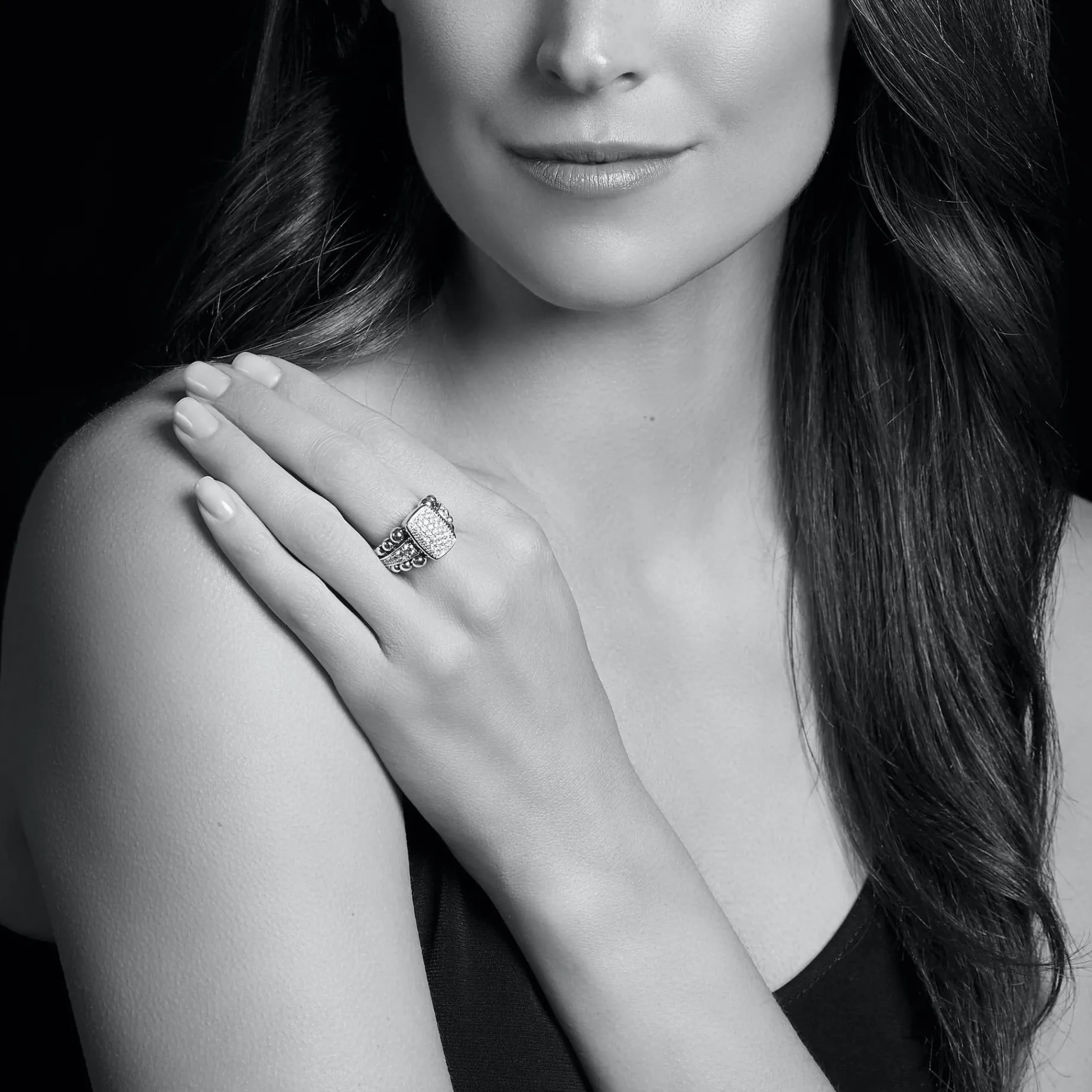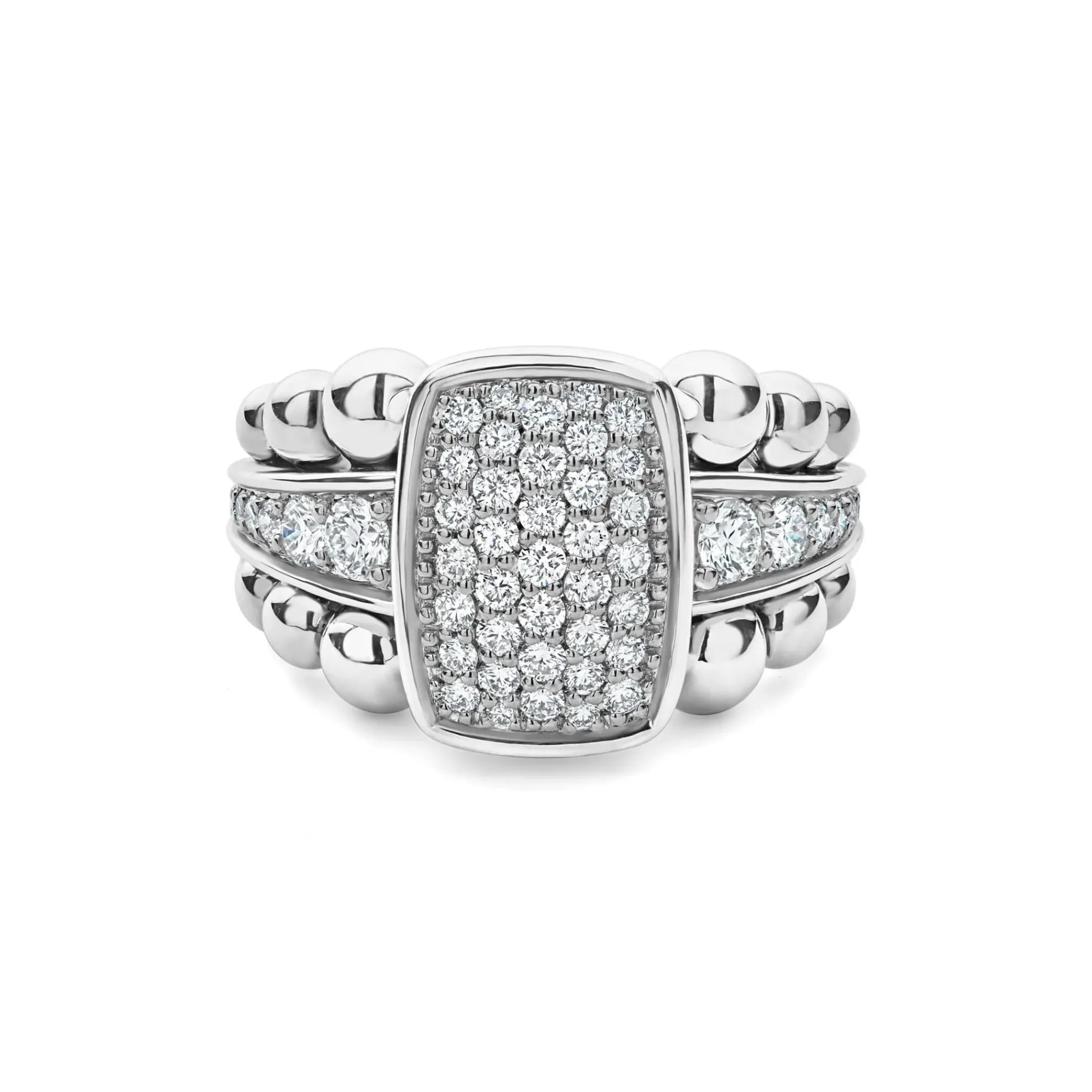A Pavé Diamond Station Highlighted By A Band Of Sterling Silver Caviar Beading And Diamonds. Lagos Diamonds Are The Highest Quality Natural Stones.