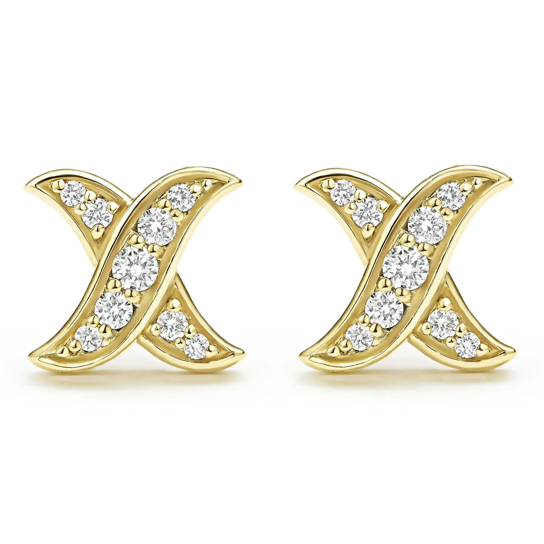 18K Gold And Diamonds Form These X Stud Earrings. Lagos Diamonds Are The Highest Natural Quality Stones.