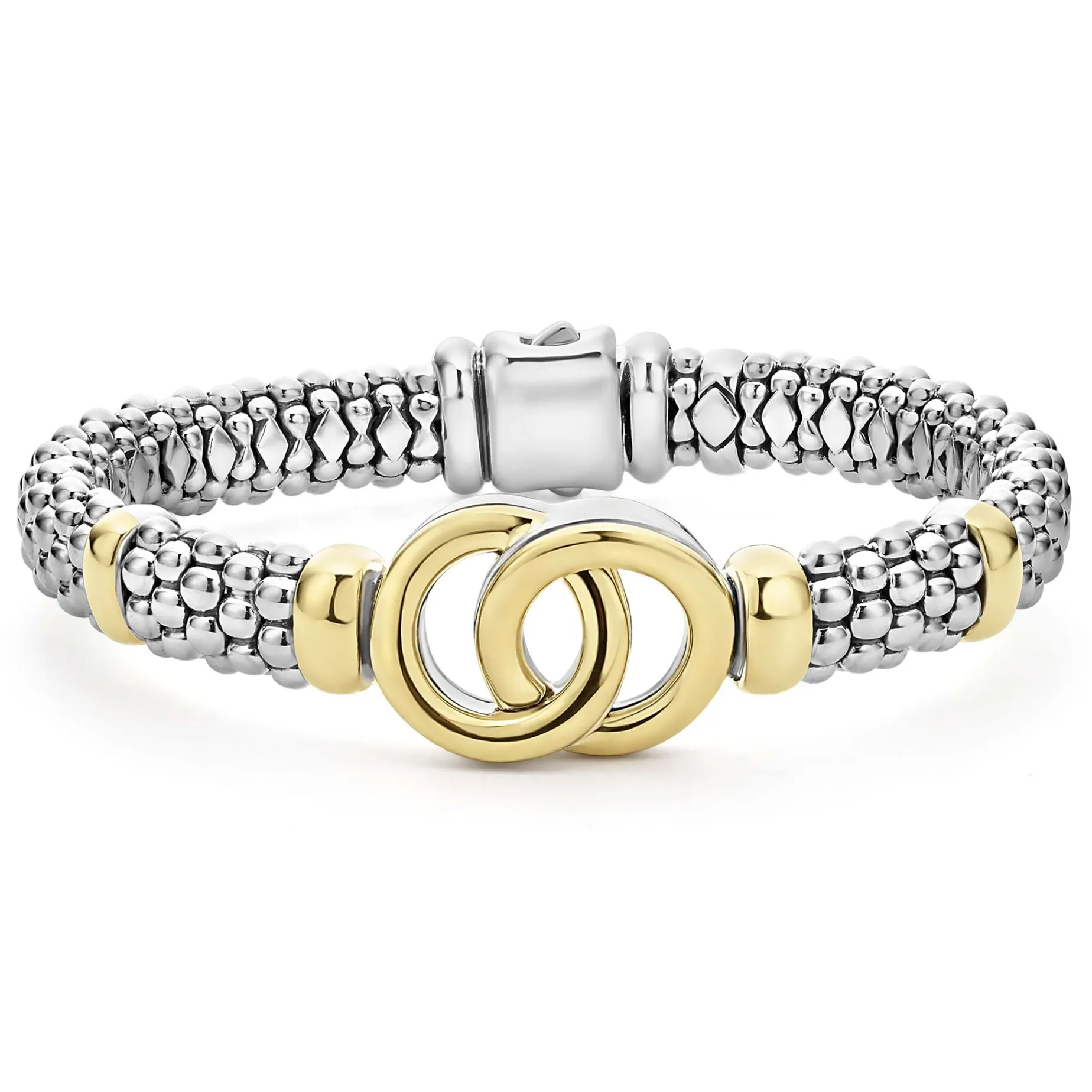 18K Gold And Sterling Silver Accents Caviar Beading To Form This Signature Interlocking Bracelet.