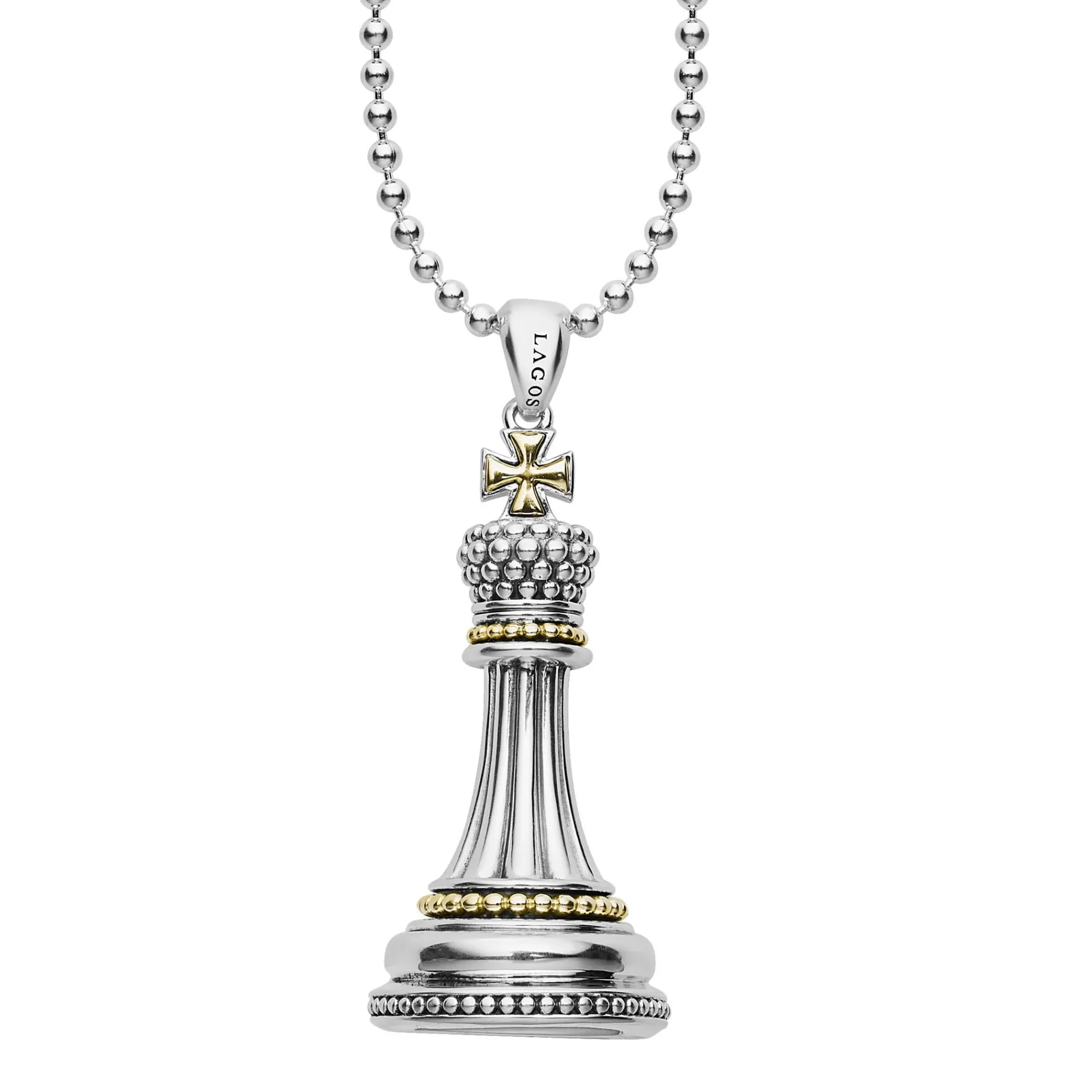 A Lagos Exclusive. Beautifully Crafted Sterling Silver And 18K Gold King Chess Piece Finished On A 34 Inch Ball Chain Necklace.