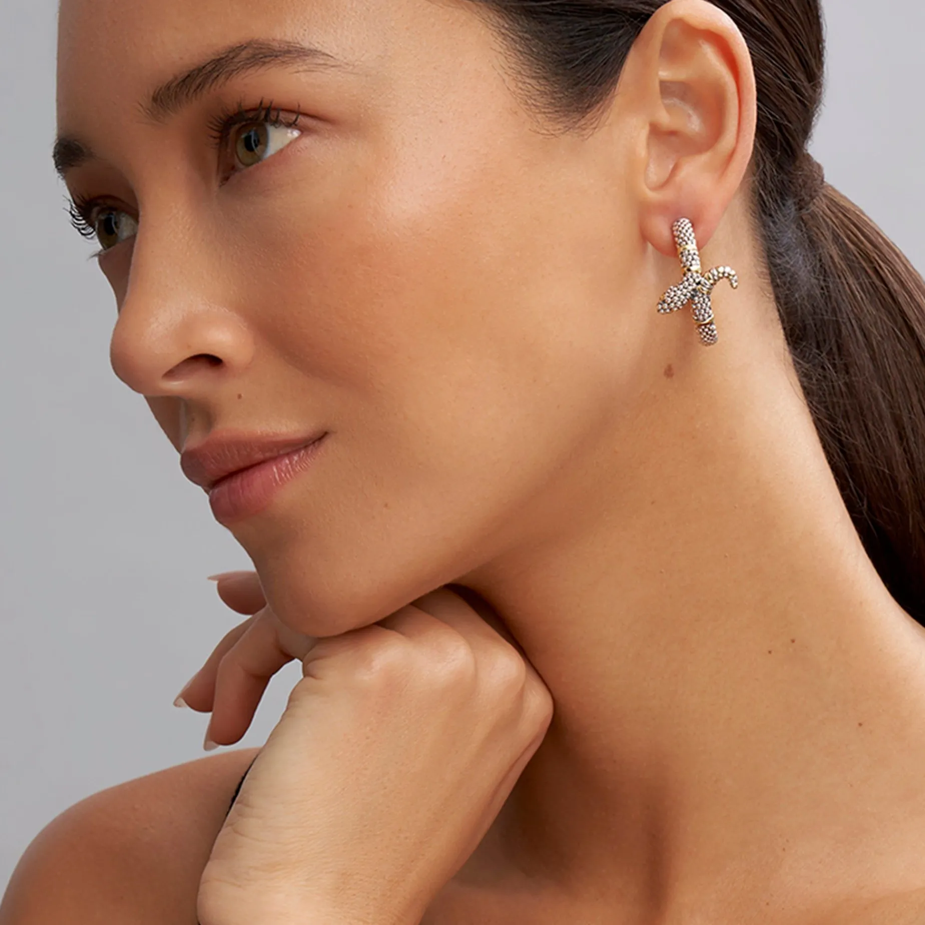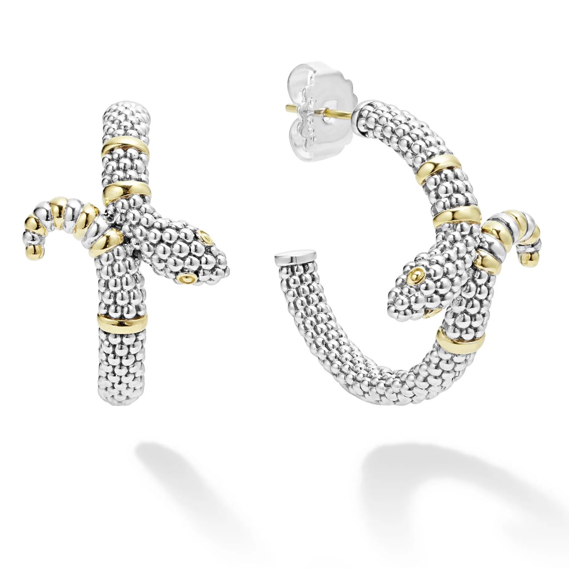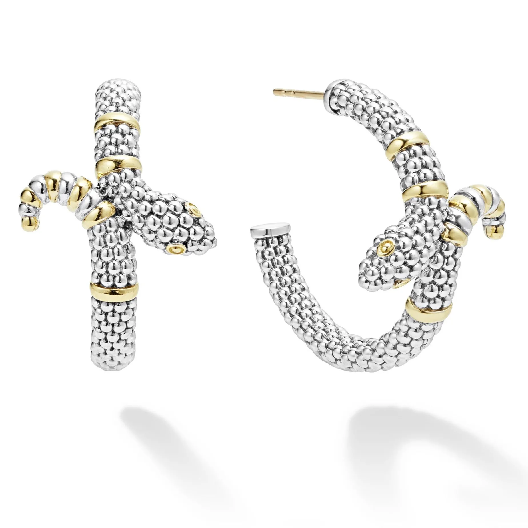 Sterling Silver Caviar Beading Highlighted By 18K Gold Stations Form These Unique Snake Hoop Earrings.