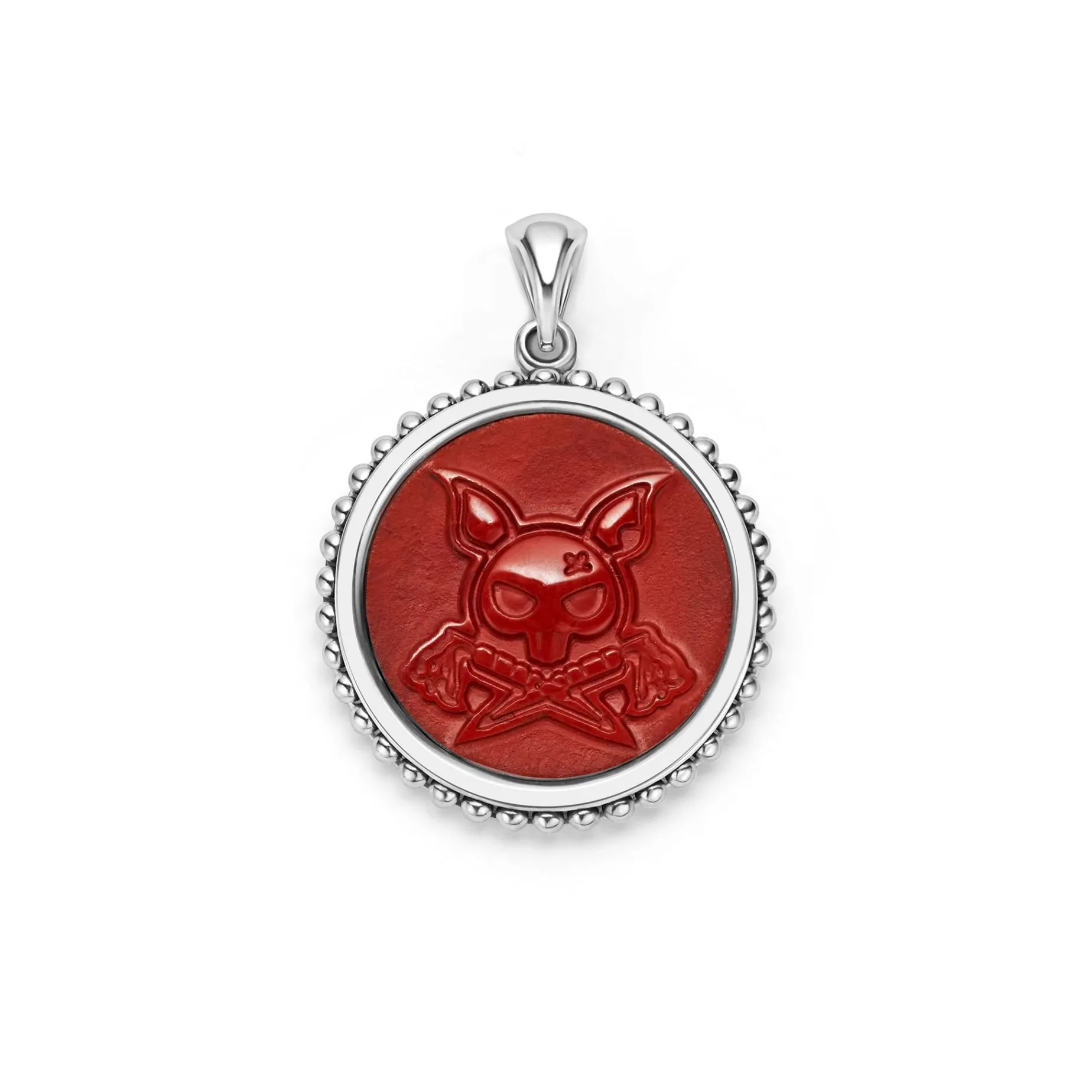Red Jasper Gemstone Surrounded By Sterling Silver Caviar Beading Form This Krunch Emblem Amulet.