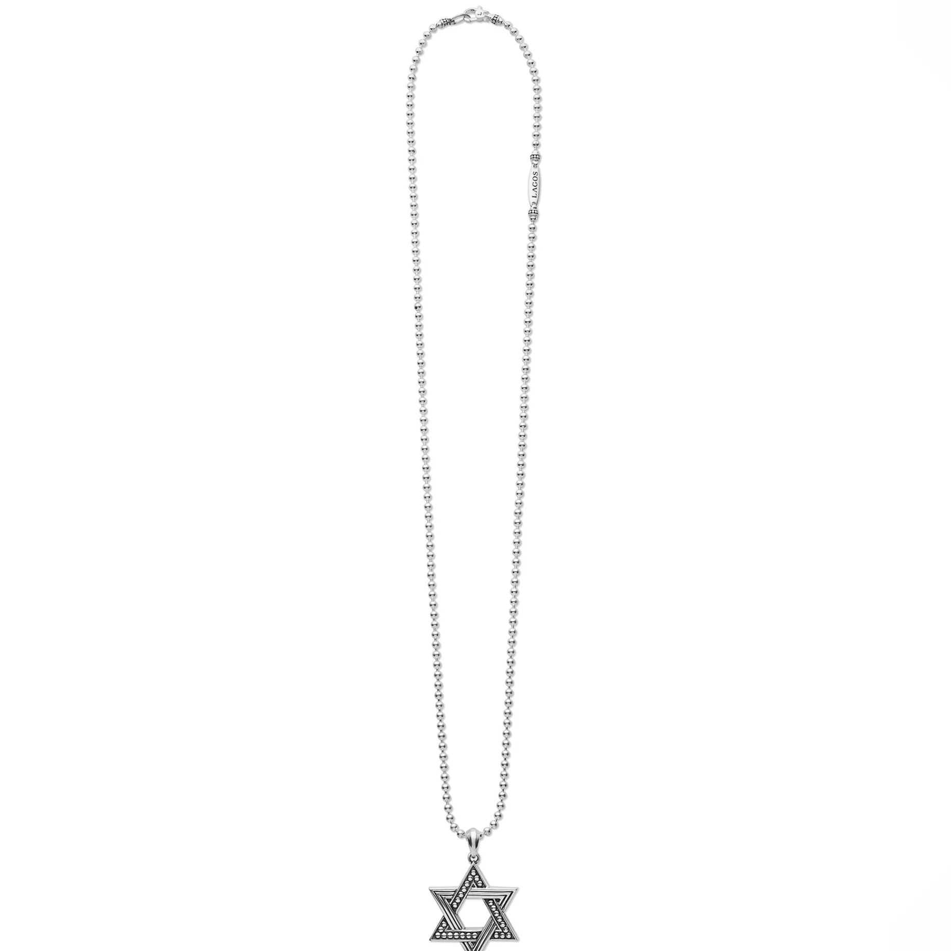 Sterling Silver In A Star Motif Forms This Star Of David Amulet. Finished On A Sterling Silver Ball Chain Necklace.