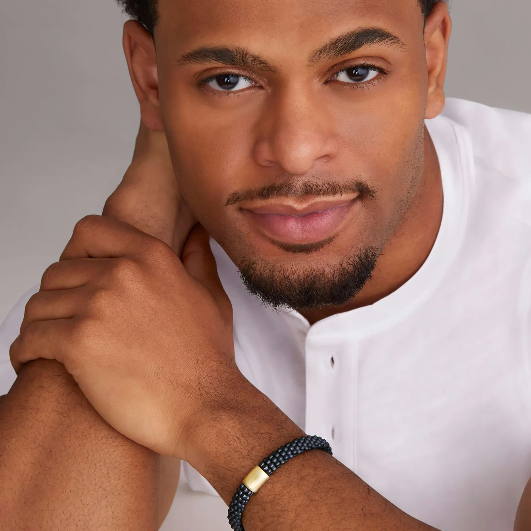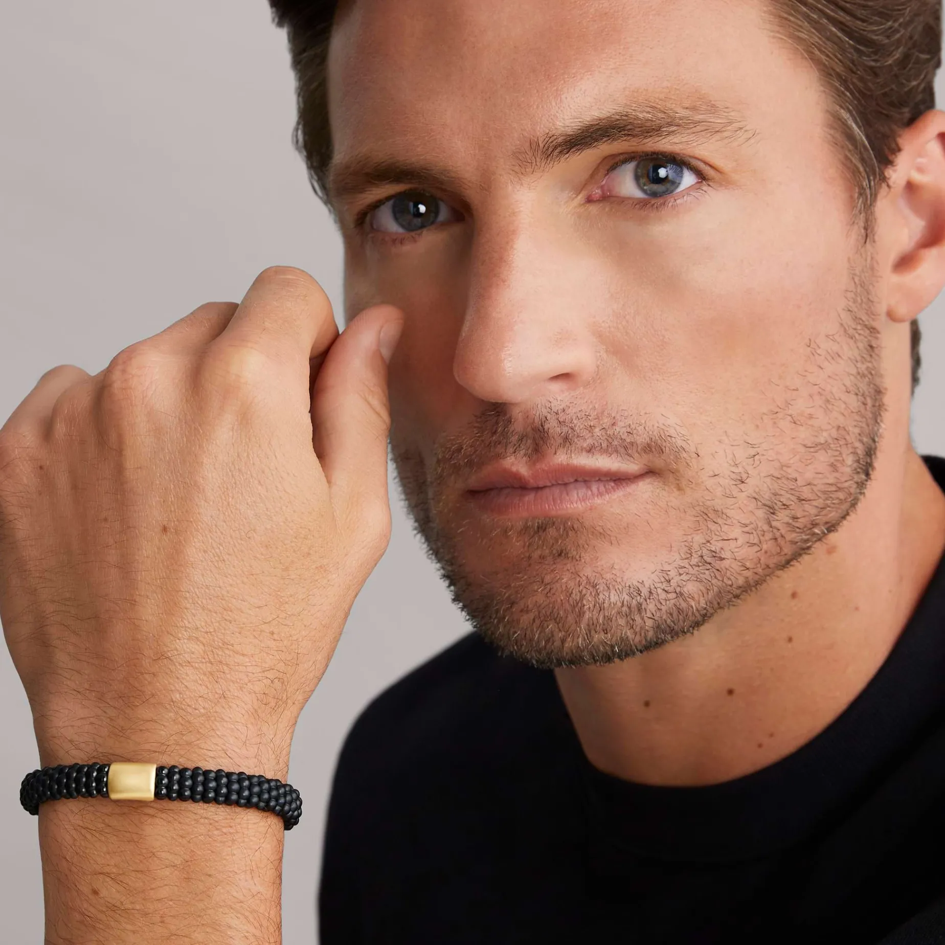 Matte Black Ceramic Caviar Beaded Bracelet Accented By A Satin Finish 18K Gold Single Station Forms This Classic Caviar Beaded Bracelet.