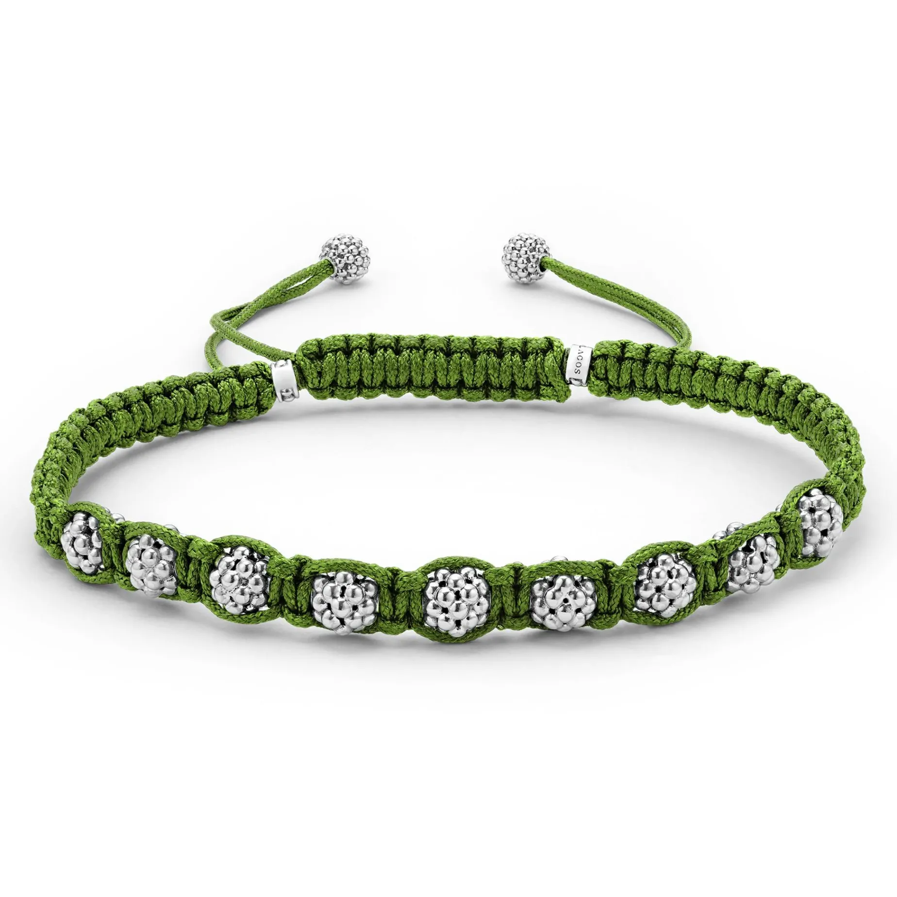 Green Braided Nylon With Sterling Silver Caviar Beading Forms This Versatile Macrame Bracelet.