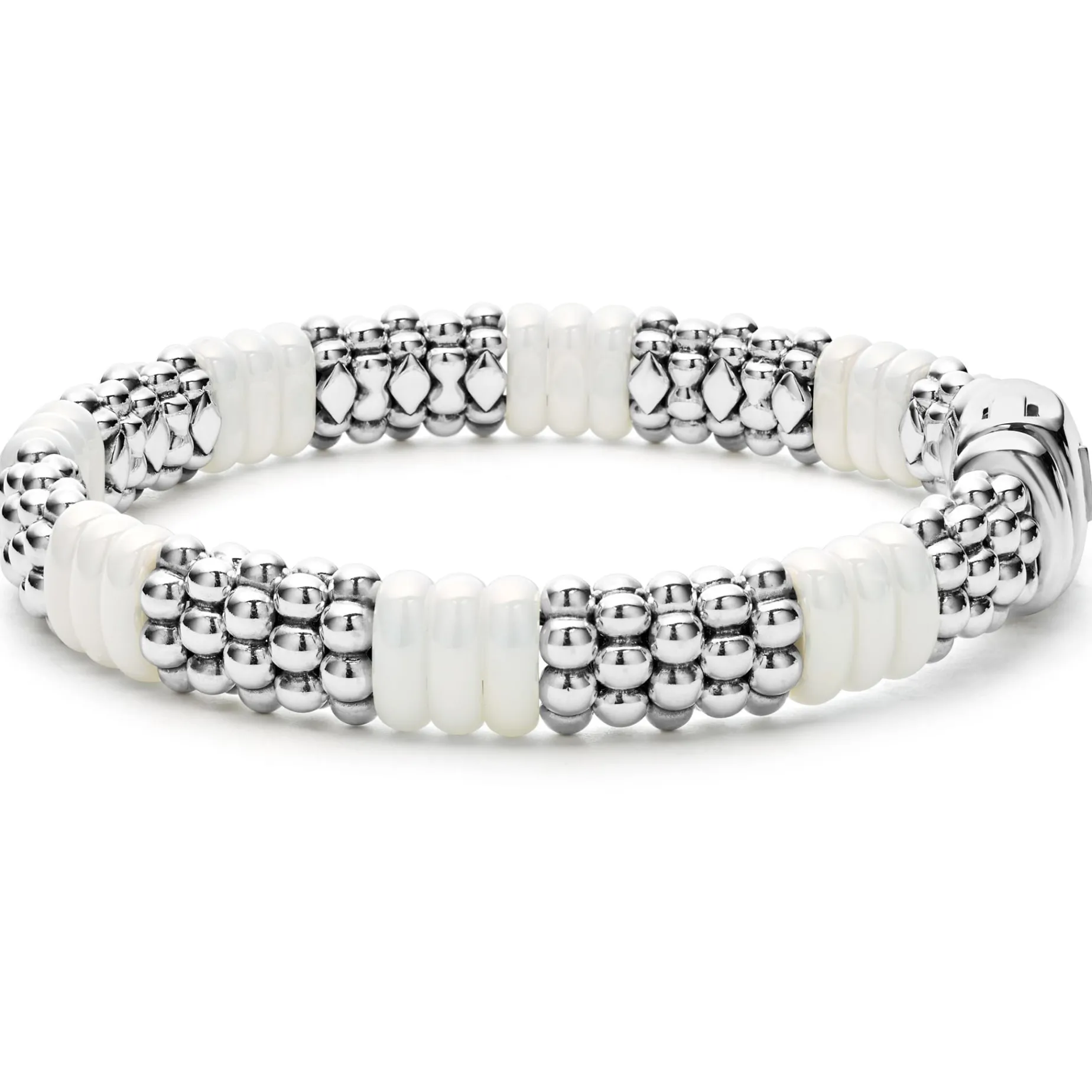 Caviar Beading In Sterling Silver And Smooth White Ceramic Form This Signature Bracelet.
