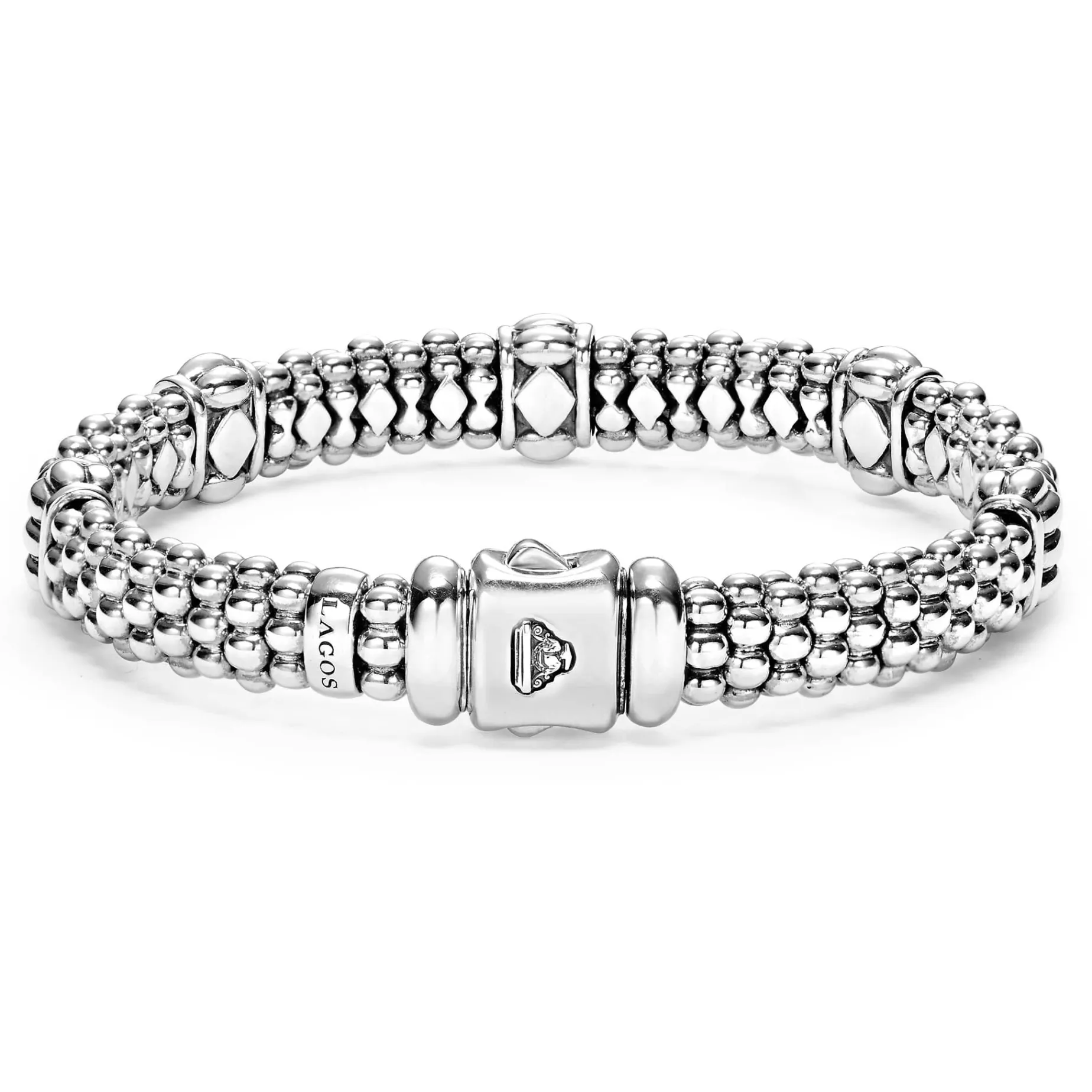 Five Fluted Stations Accent The Sterling Silver Caviar Beading On This Versatile Bracelet.