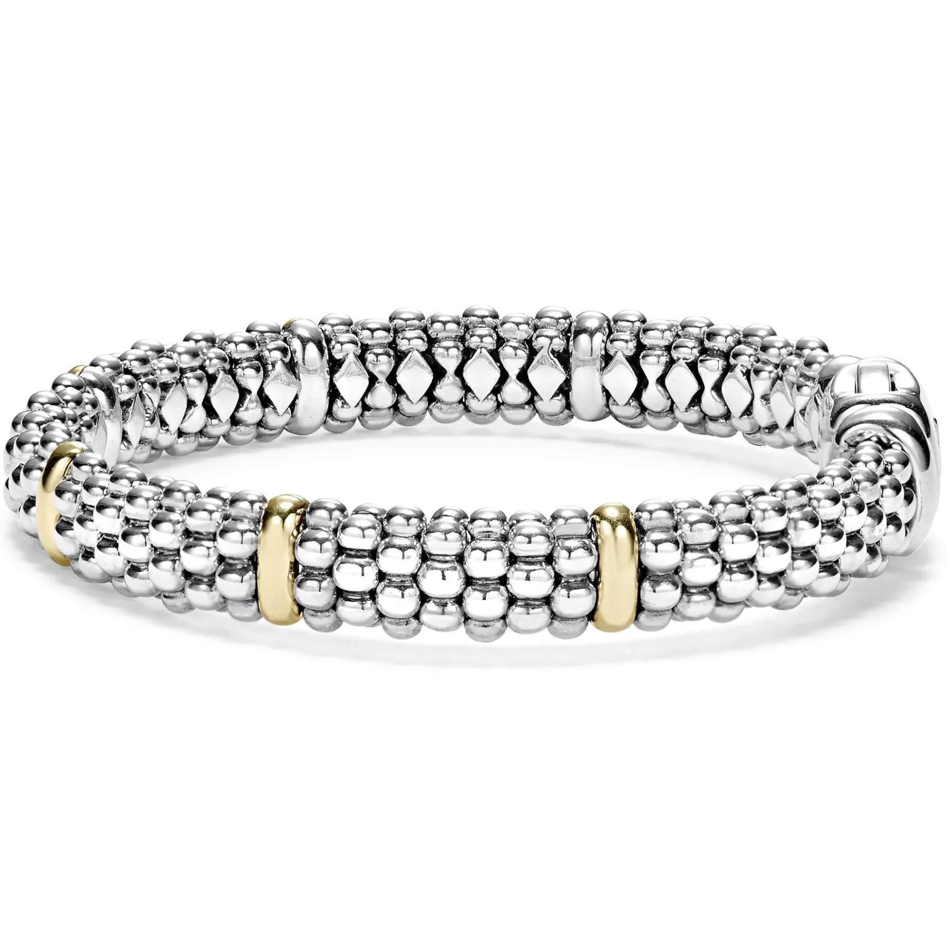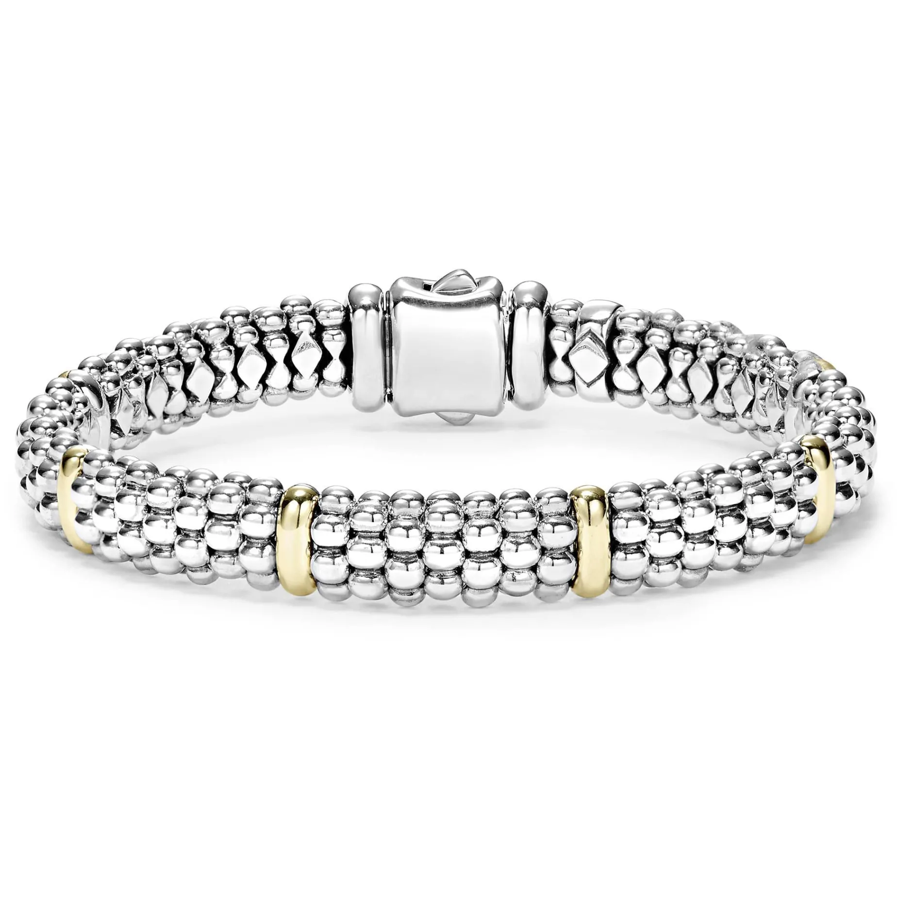 Our Classic Sterling Silver Caviar Bracelet With Six 18K Gold Stations.