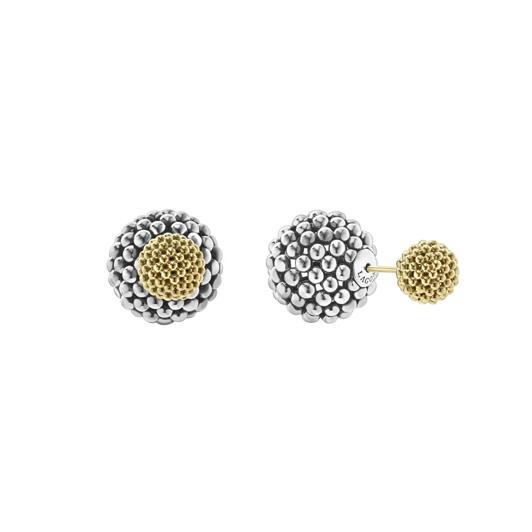 18K Gold Caviar Beaded Front Studs Pair With Sterling Silver Beaded Backs Form These Chic Front-Back Style Earrings.