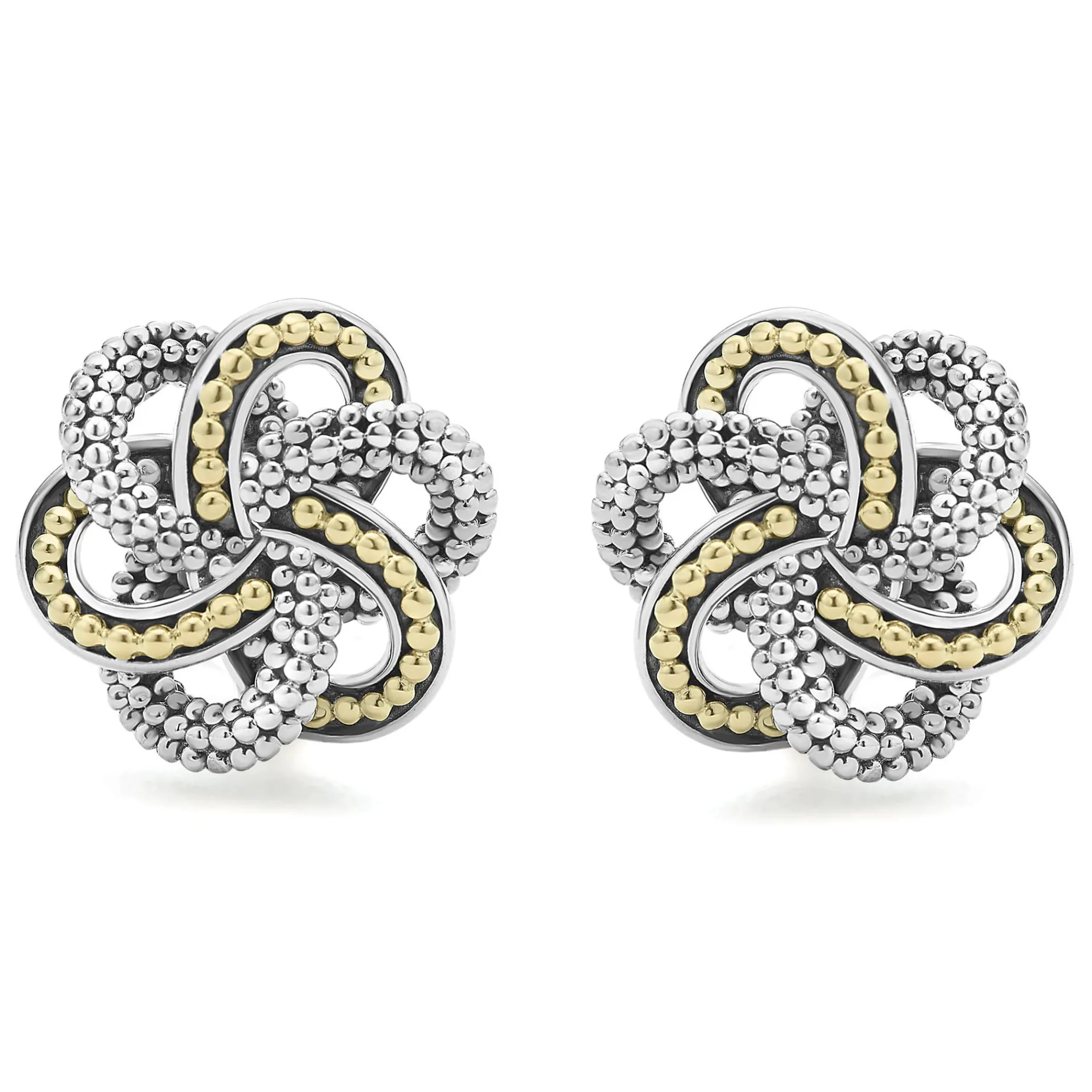 Love Knot Earrings Formed Of 18K Gold And Sterling Silver Caviar Beading.