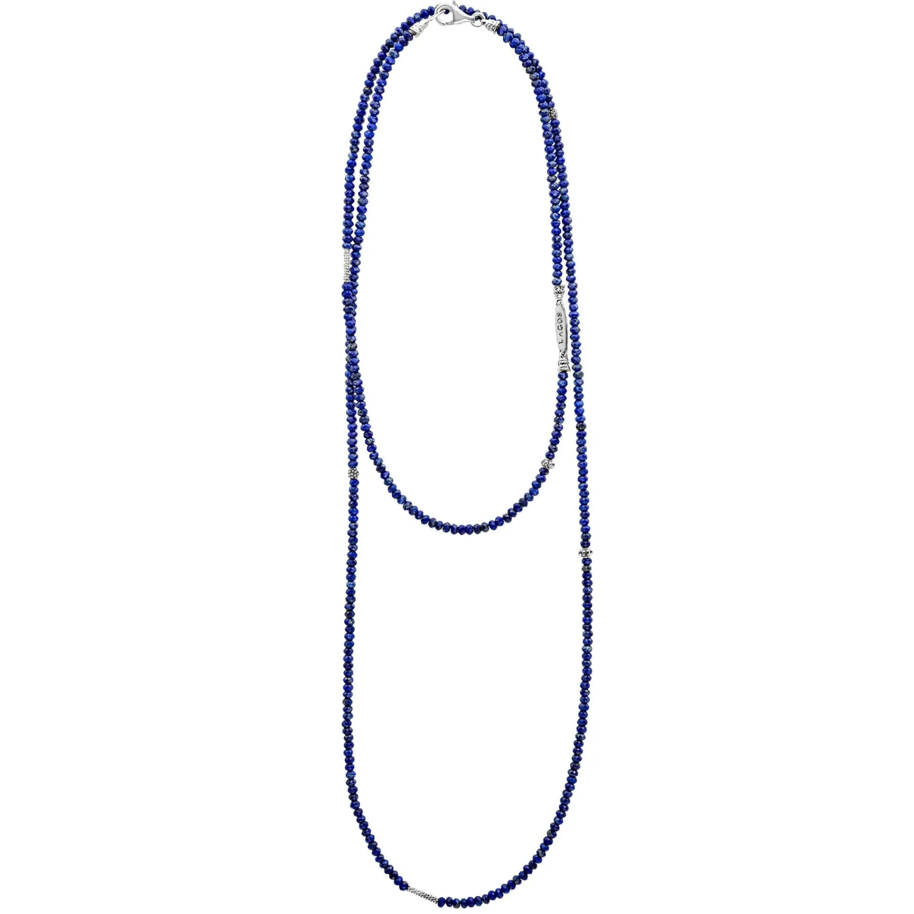 Lapis Gemstone Beaded Necklace With Caviar Beading And Fluted Accents. Gemstones Are Natural With Unique Hues. Variations From The Colors Shown Make Each Necklace Unique.