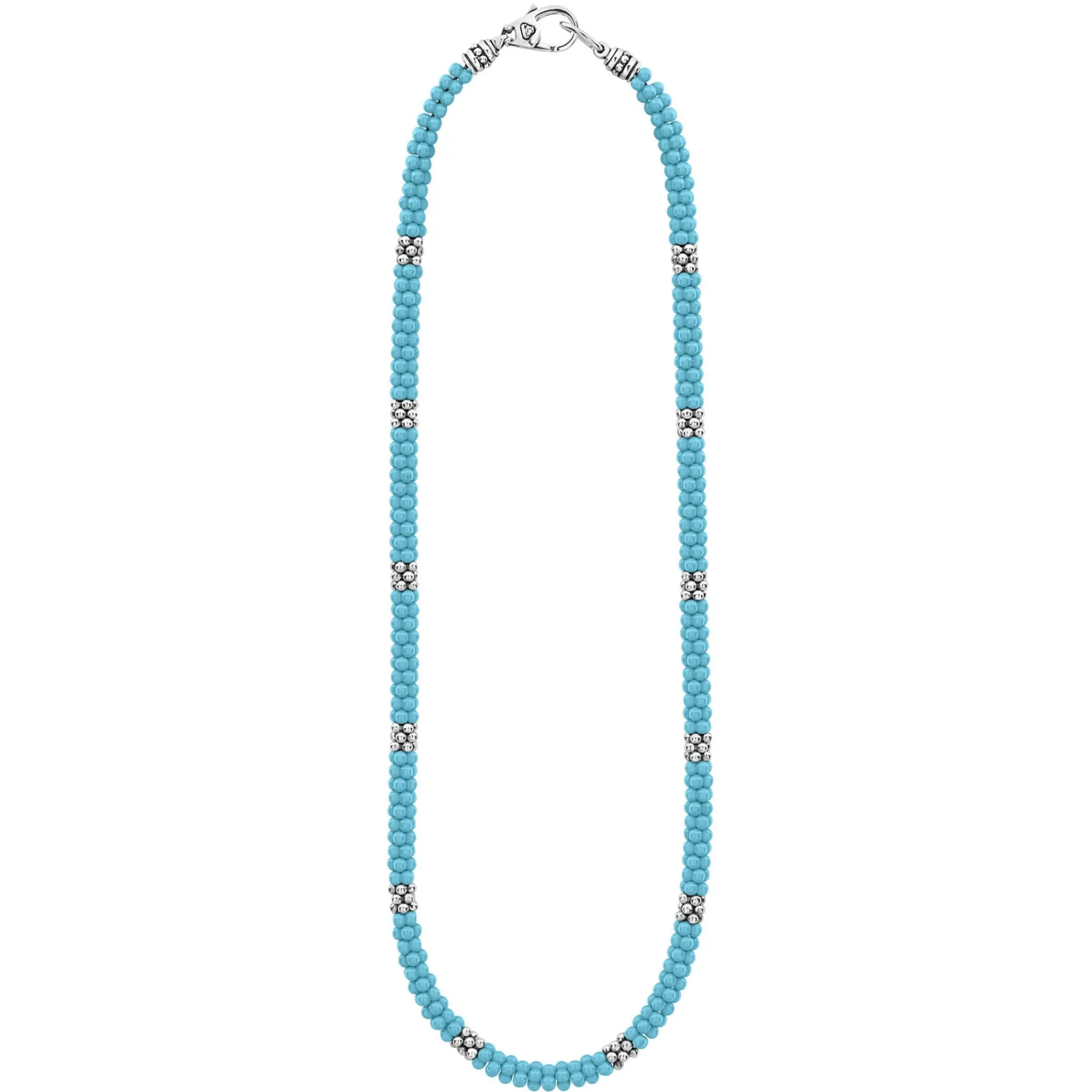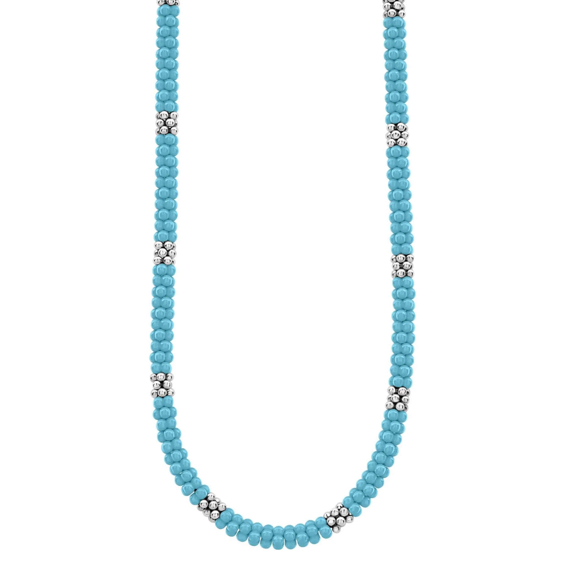 A Blue Ceramic And Sterling Silver Caviar Beaded Necklace.