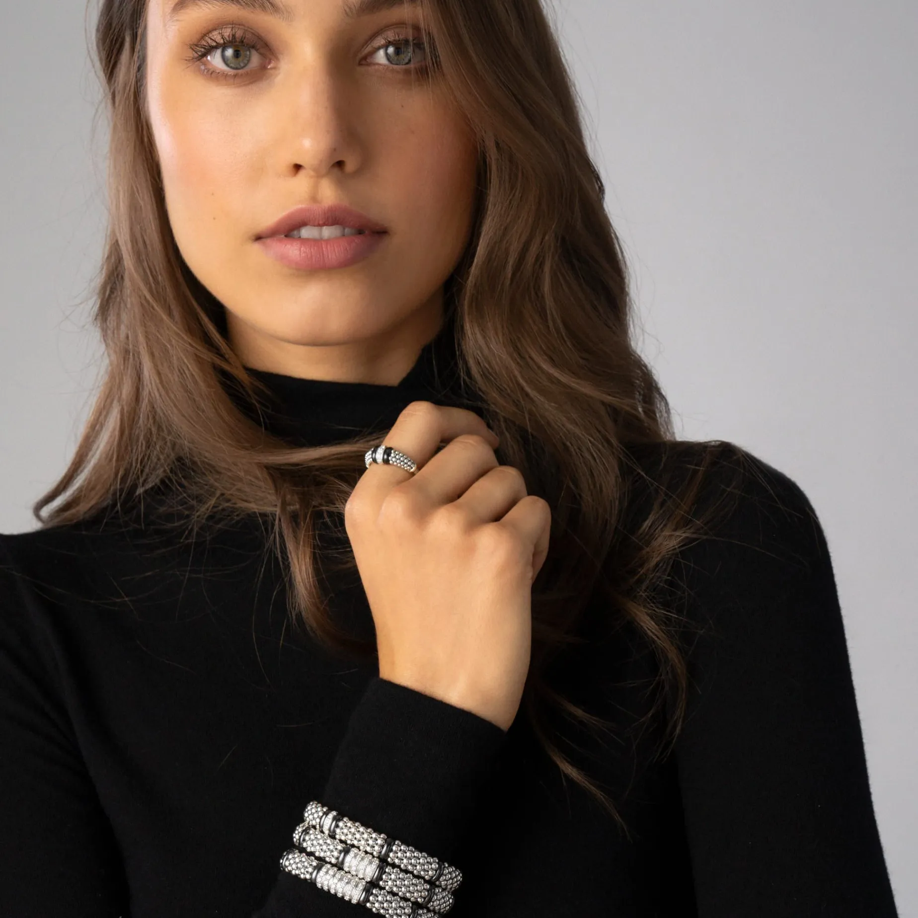 Diamonds Set In Sterling Silver Are Accented By Sleek Black Ceramic And Caviar Beading On This Every Day Ring. Lagos Diamonds Are The Highest Quality Natural Stones.