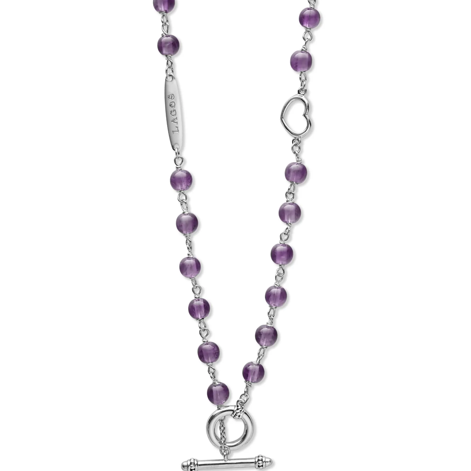 Amethyst And Sterling Silver Caviar Beaded Necklace Finished With A Toggle Clasp. Necklace Adjustable 16 To 18 Inches.