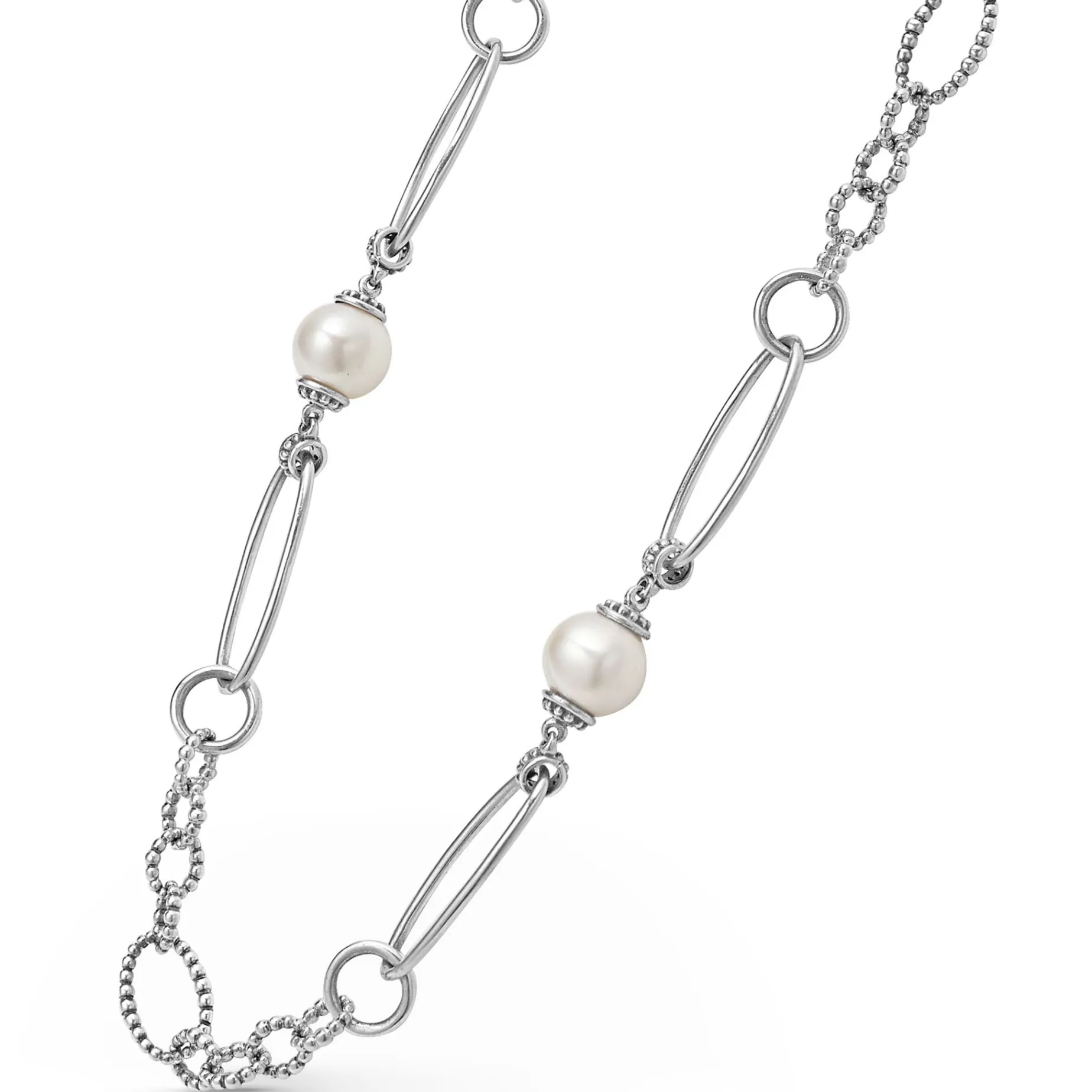 Five Cultured Freshwater Pearl Stations On A Signature Sterling Silver Caviar Beaded Link Necklace.