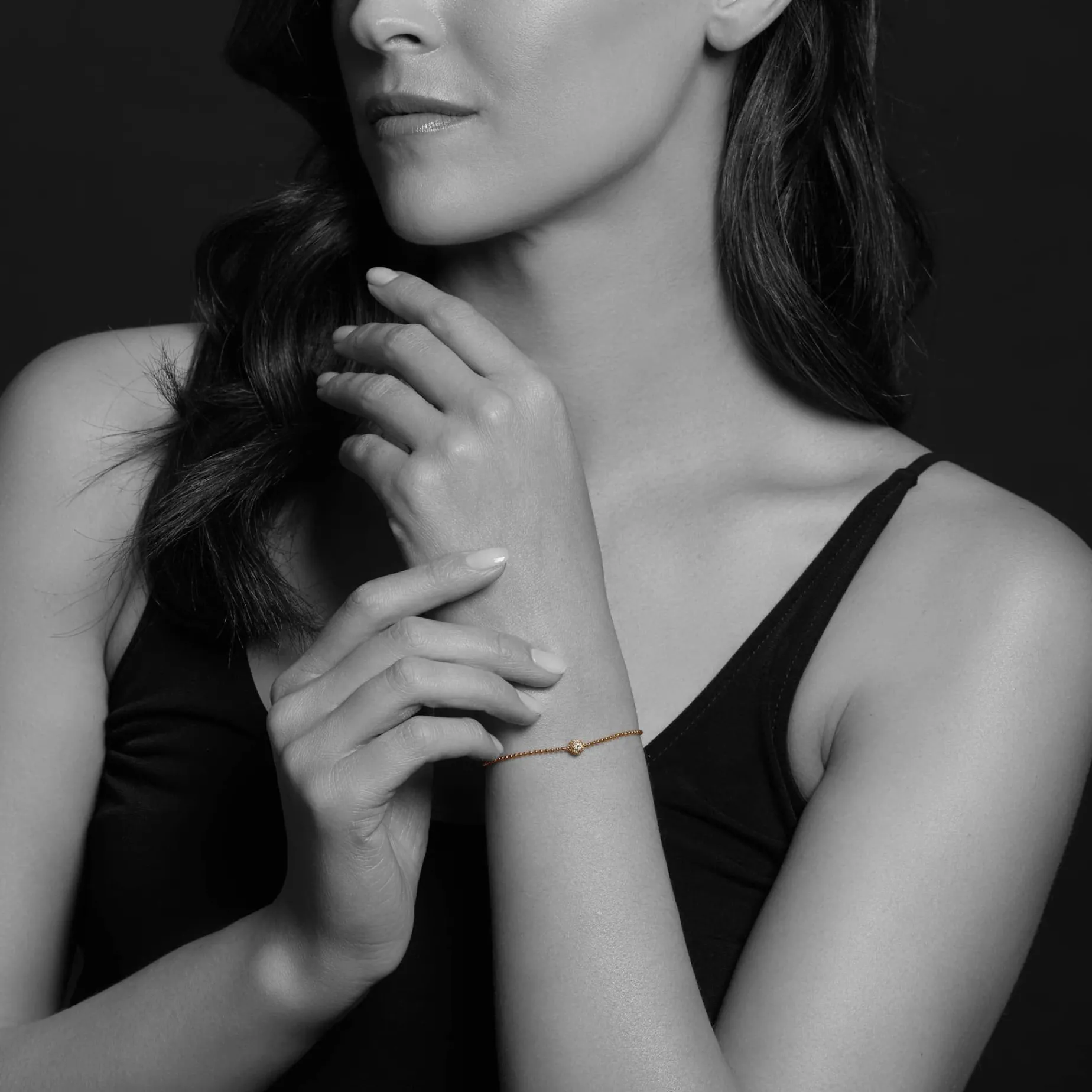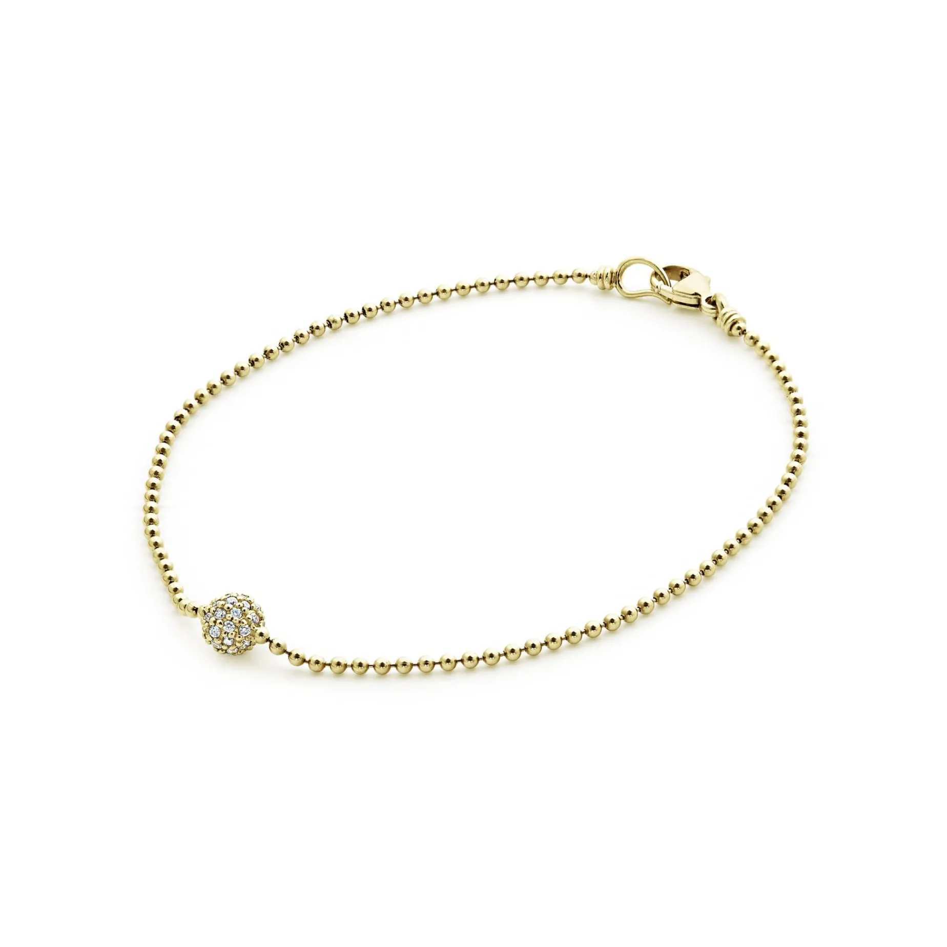 A Single Pavé Diamond Sphere And An 18K Gold Strand Form This Bracelet. Lagos Diamonds Are The Highest Quality Natural Stones.