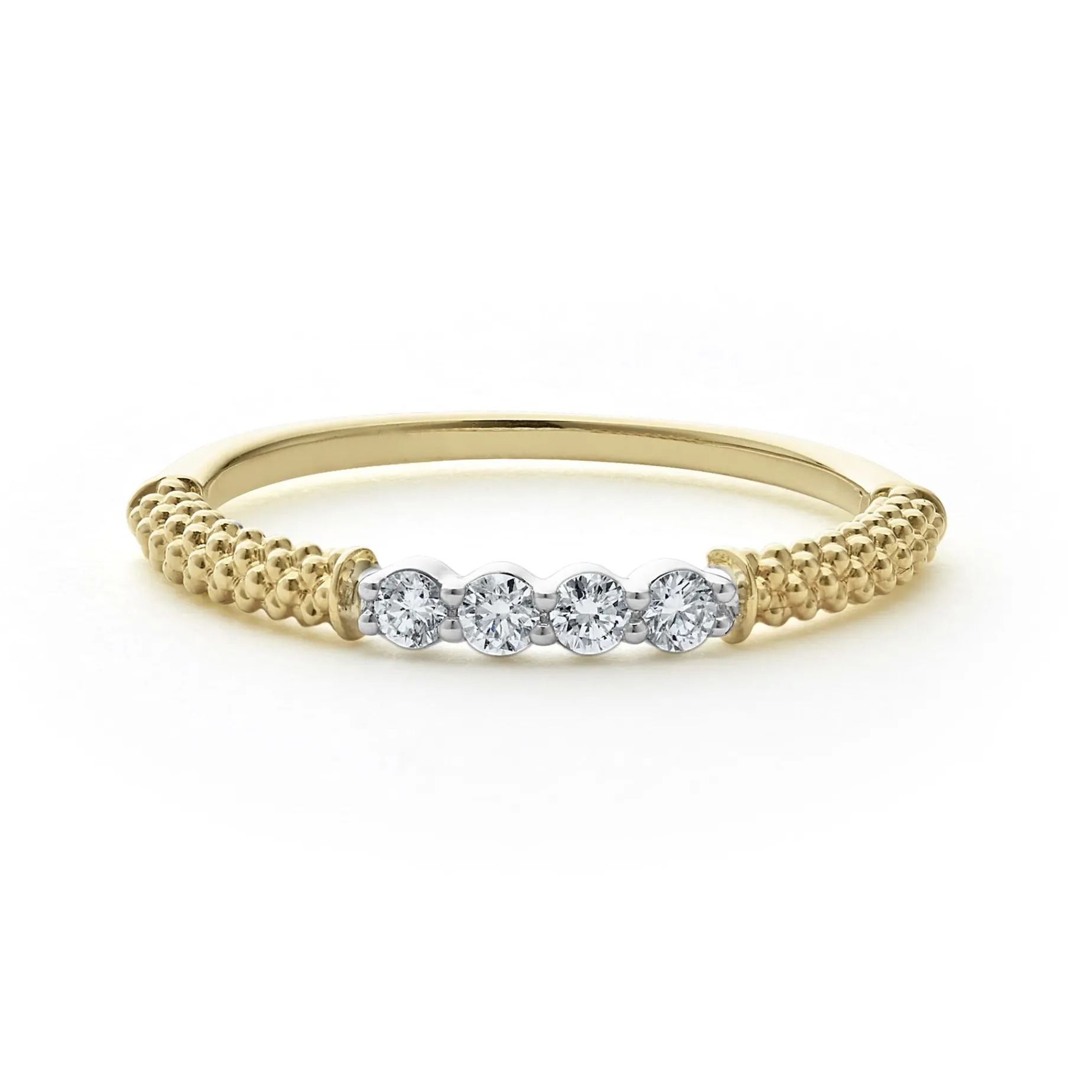 18K Gold Superfine Caviar Beading And Diamonds Set In 18K White Gold Form This Classic Stacking Ring. Lagos Diamonds Are The Highest Quality Natural Stones.