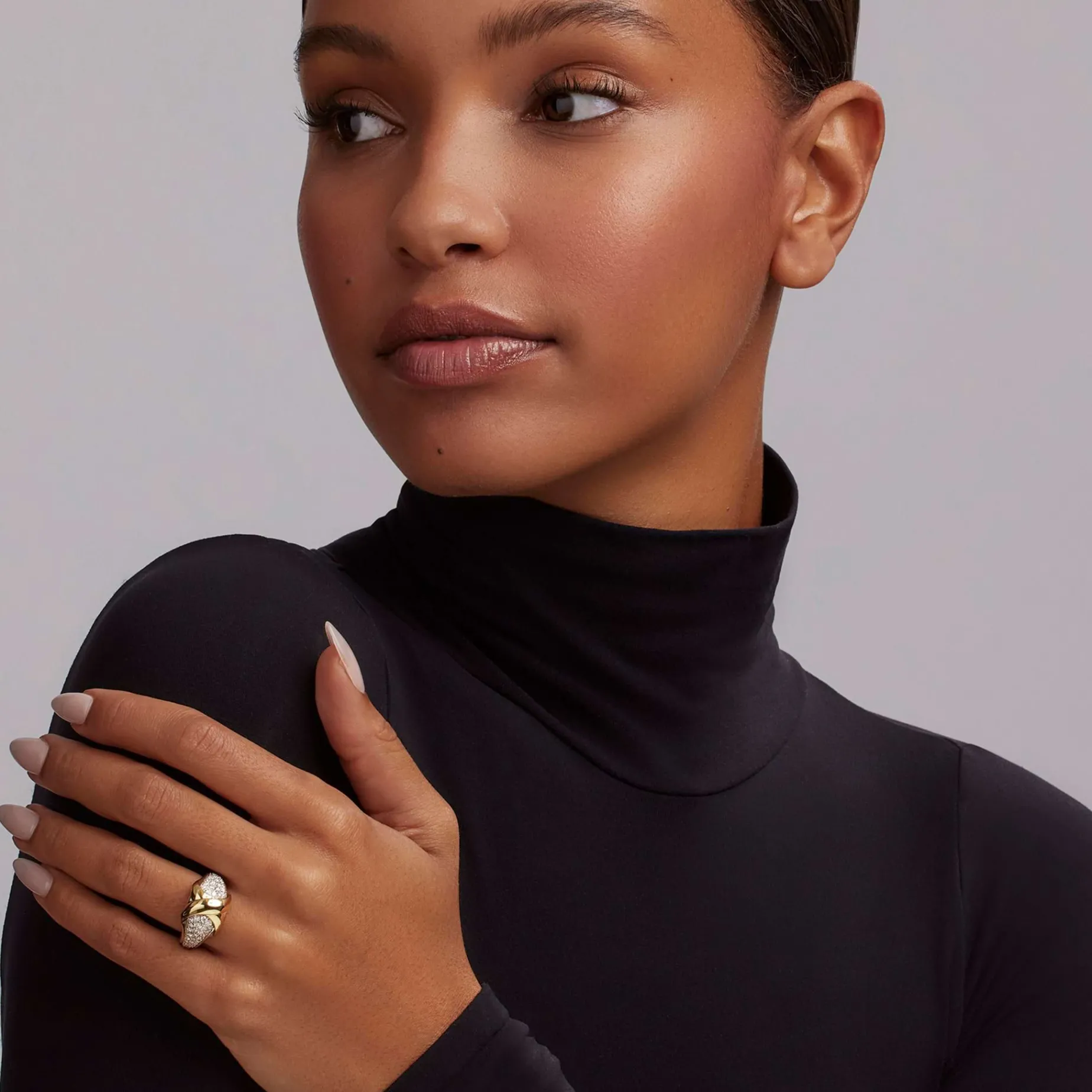 An 18K Gold X-Motif Surrounded By Diamonds Forms This Statement Ring. Lagos Diamonds Are The Highest Quality Natural Stones.