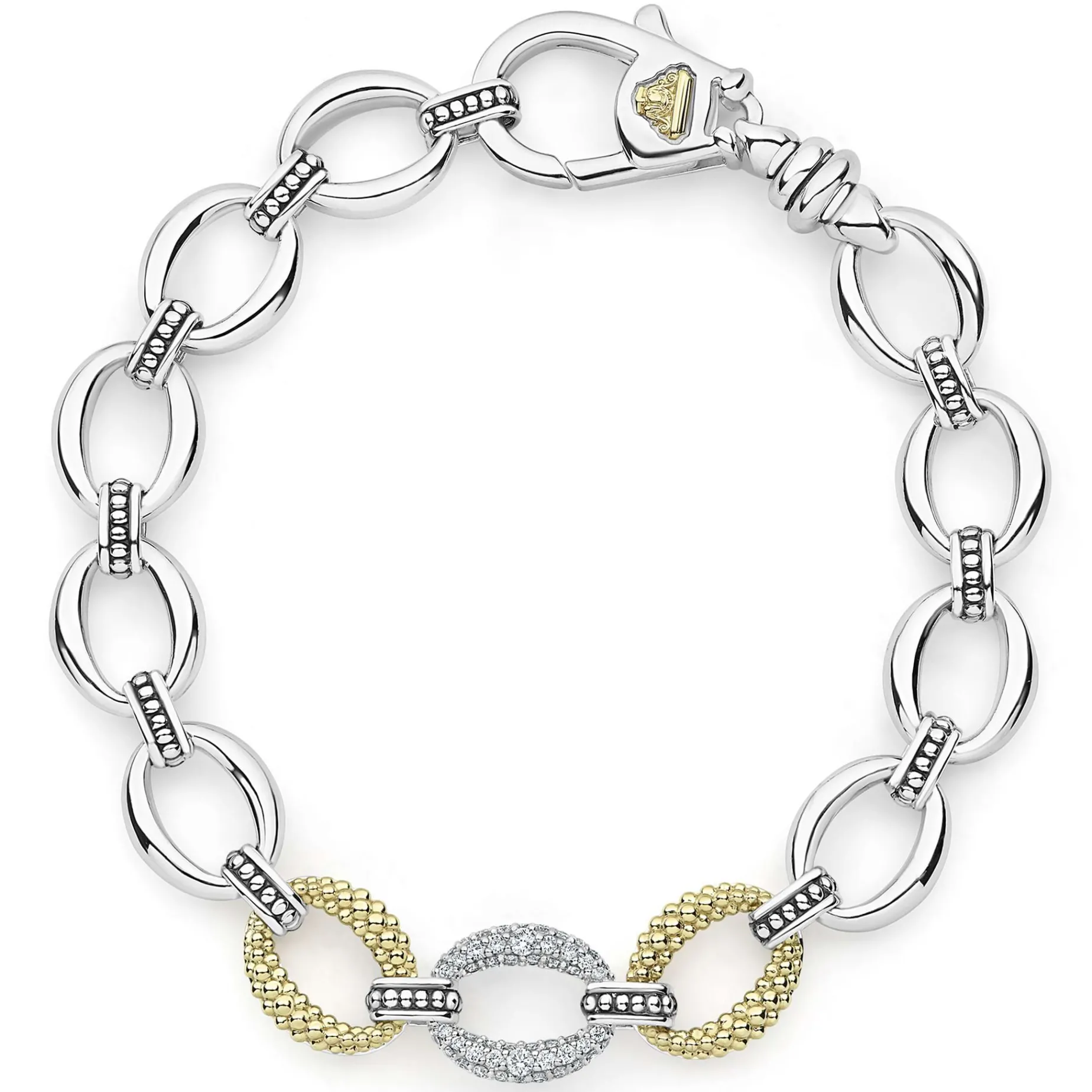 - Sterling Silver Caviar Beading Accented By An 18K Gold And Diamond Station Form This Detailed Lagos 6Mm Bracelet. Set Includes Size Medium.