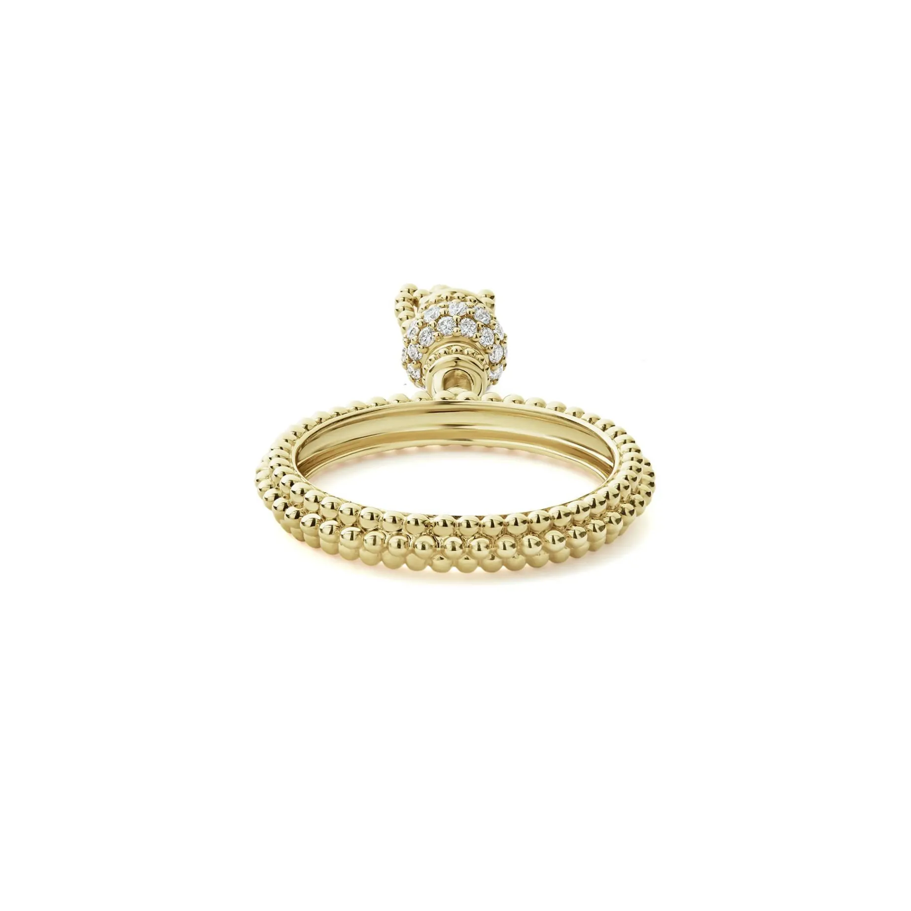 Diamonds Set With 18K Gold Form This Tassel Ring On A Caviar Band. Lagos Diamonds Are The Highest Quality Natural Stones.