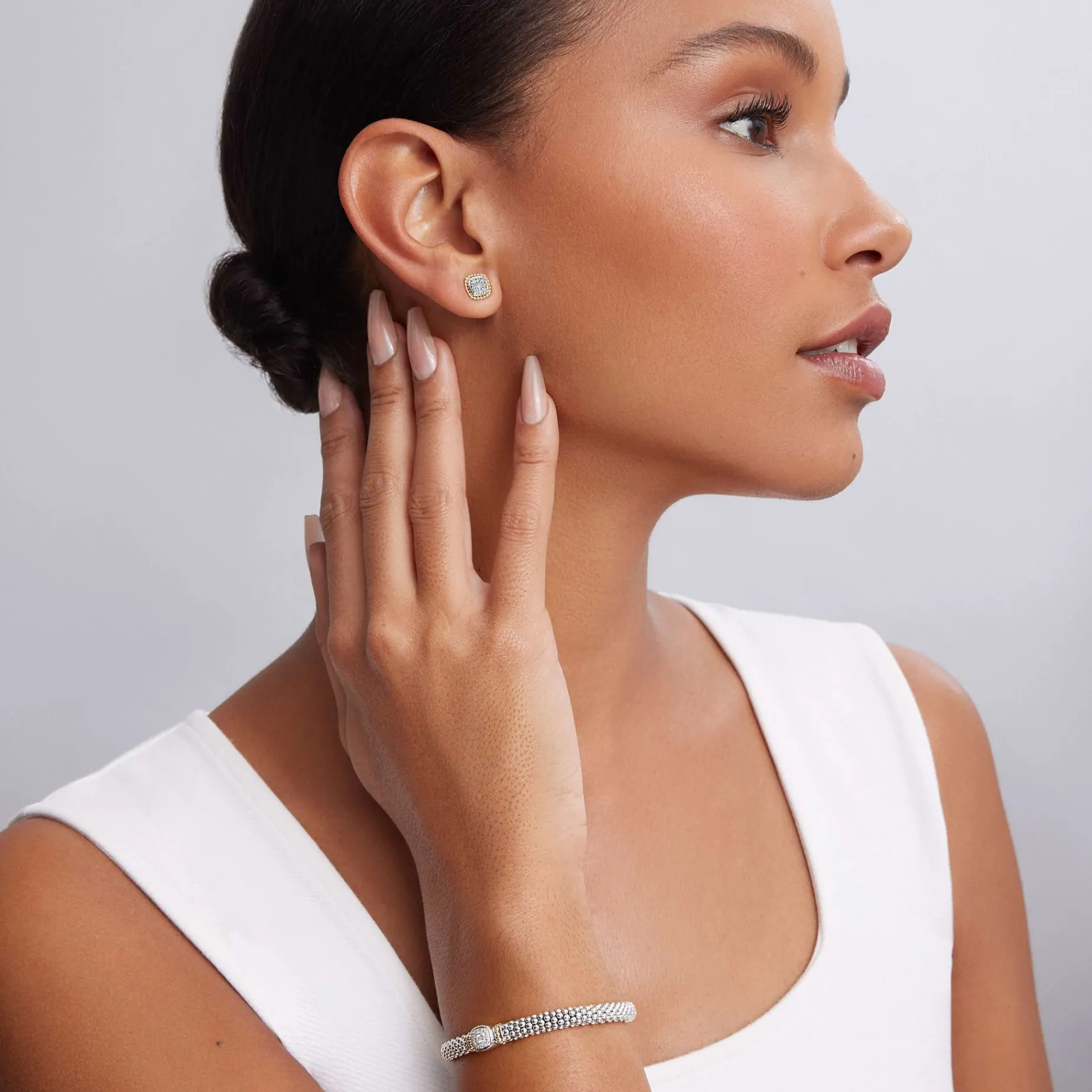 A Lagos Exclusive. 18K Gold, Sterling Silver, And Diamond Earring And Bracelet Set That Pair Perfectly Together. Lagos Diamonds Are The Highest Quality Natural Stones.