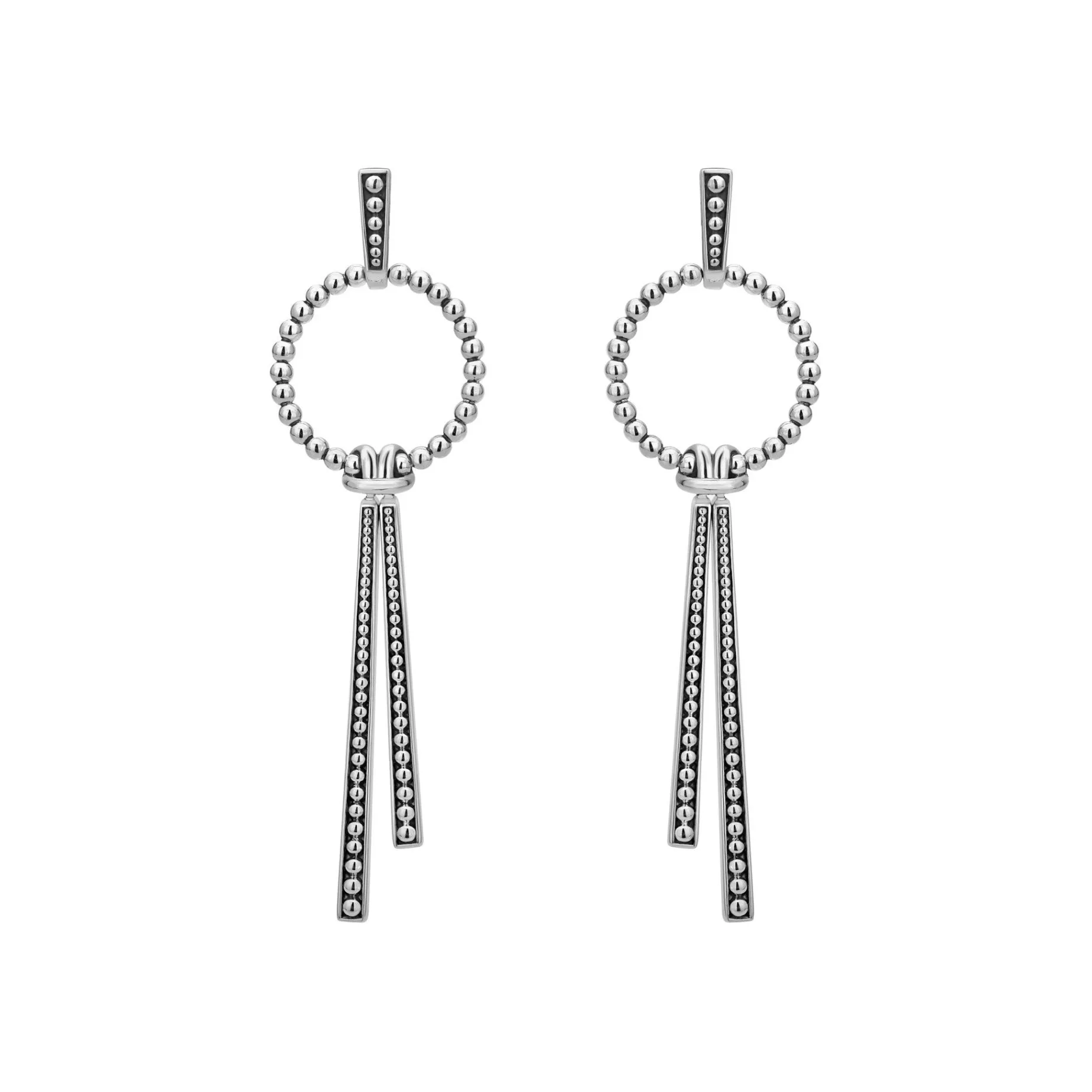 Sterling Silver Circle Drop Earrings With Two Hanging Caviar Beaded Stations.
