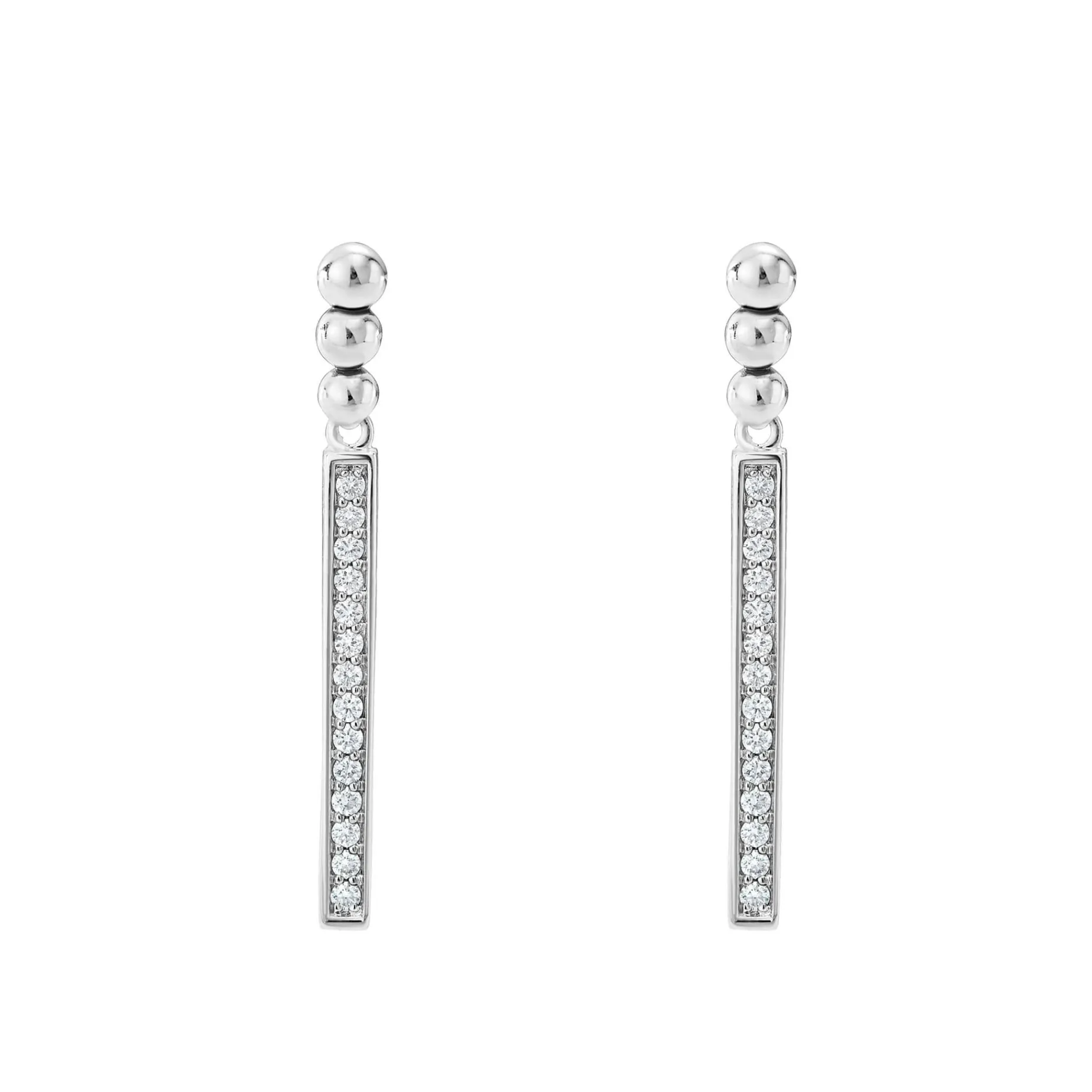 Linear Diamond Drop Earrings Set By Smoothly Polished Sterling Silver. Lagos Diamonds Are The Highest Quality Natural Stones.